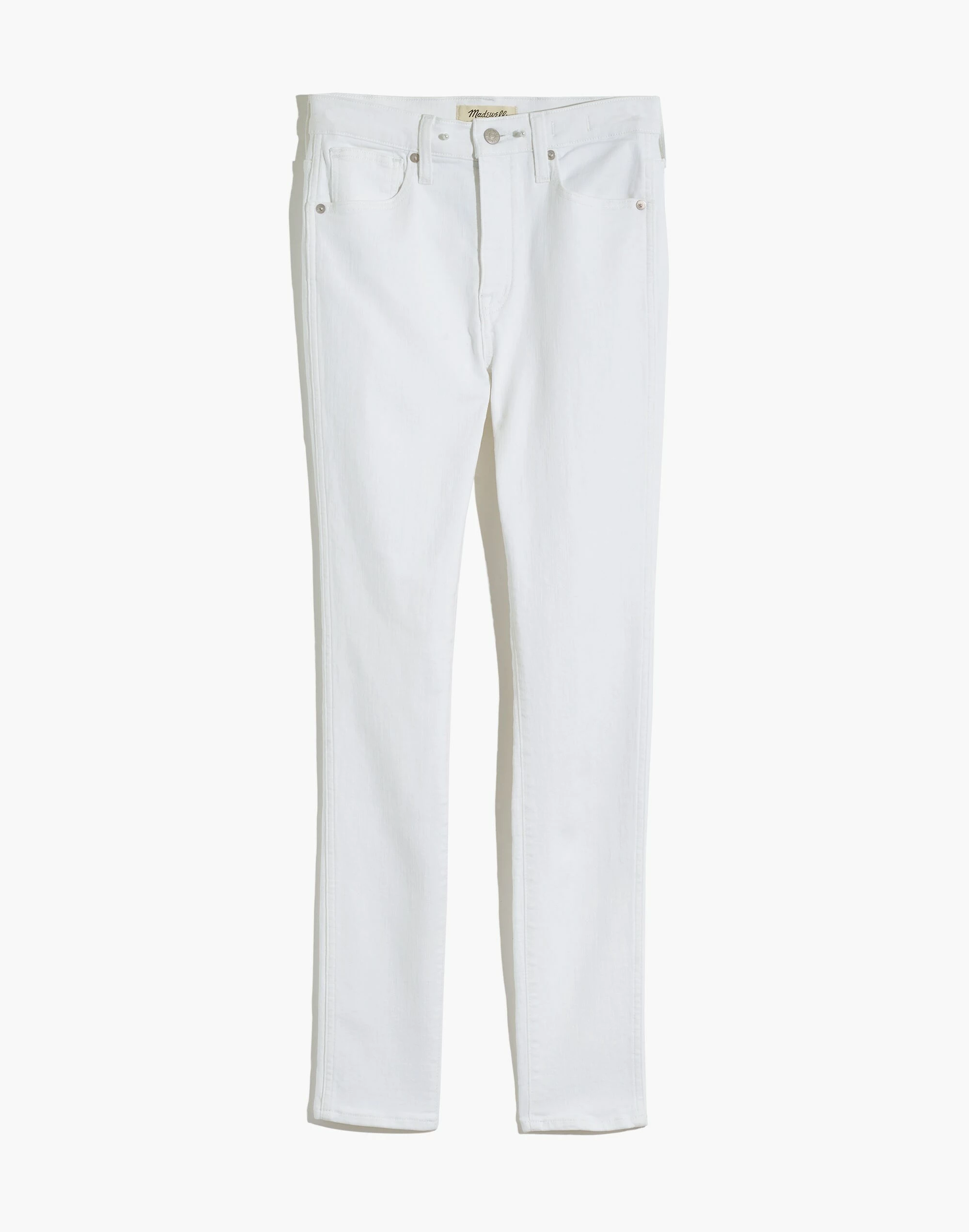 Our 10″ high-rise skinny jeans are lean and legs-for-days sexy in specially woven white denim with zero show-through.
