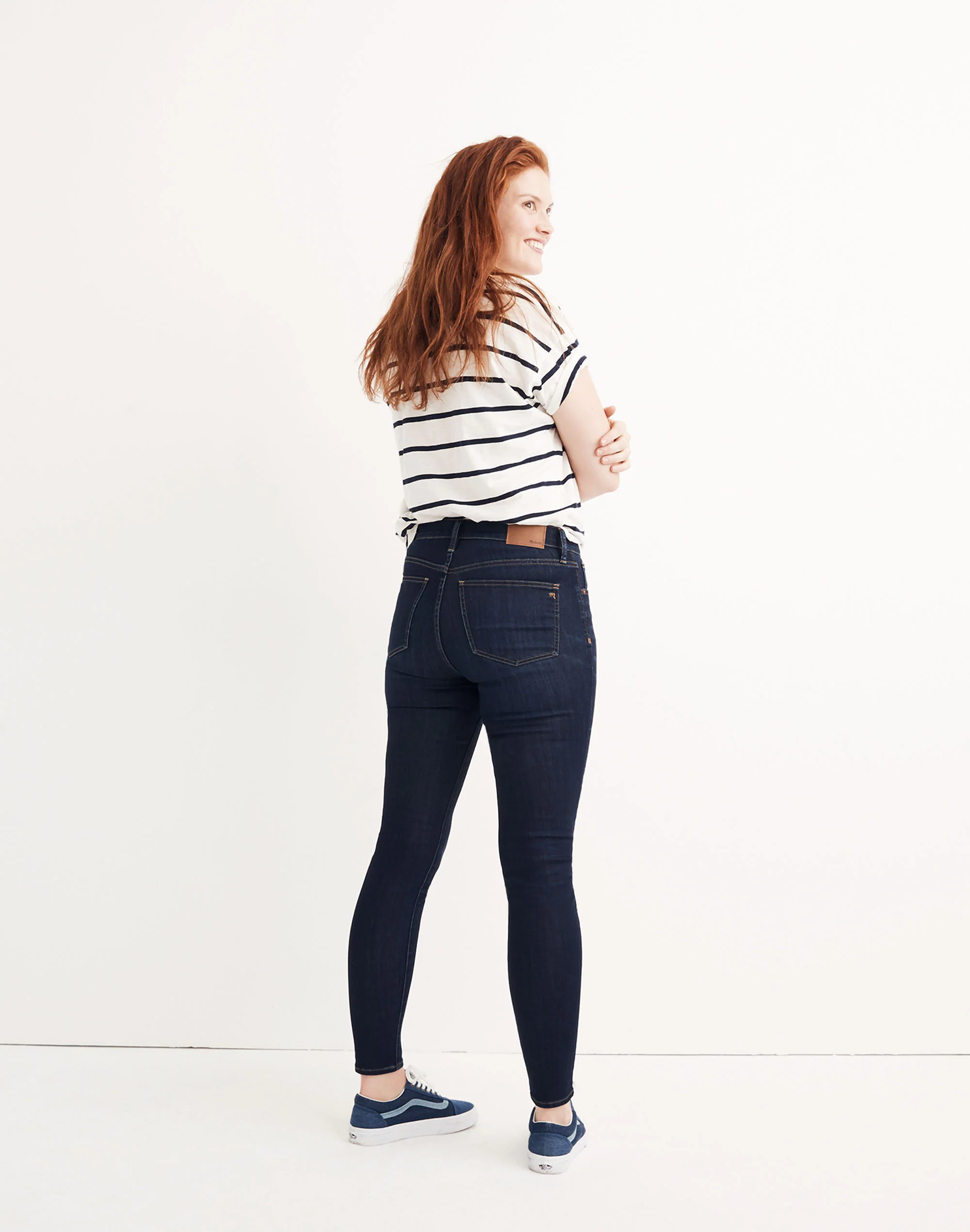 Made of soft-to-the-touch denim woven with TENCEL™ lyocell, our 9″ mid-rise skinny jeans are lean and legs-for-days sexy.