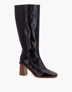 Based in Barcelona, this brand is all about sustainable footwear with a right-now look. Coming in real leather, these high boots have square toes and block heels.