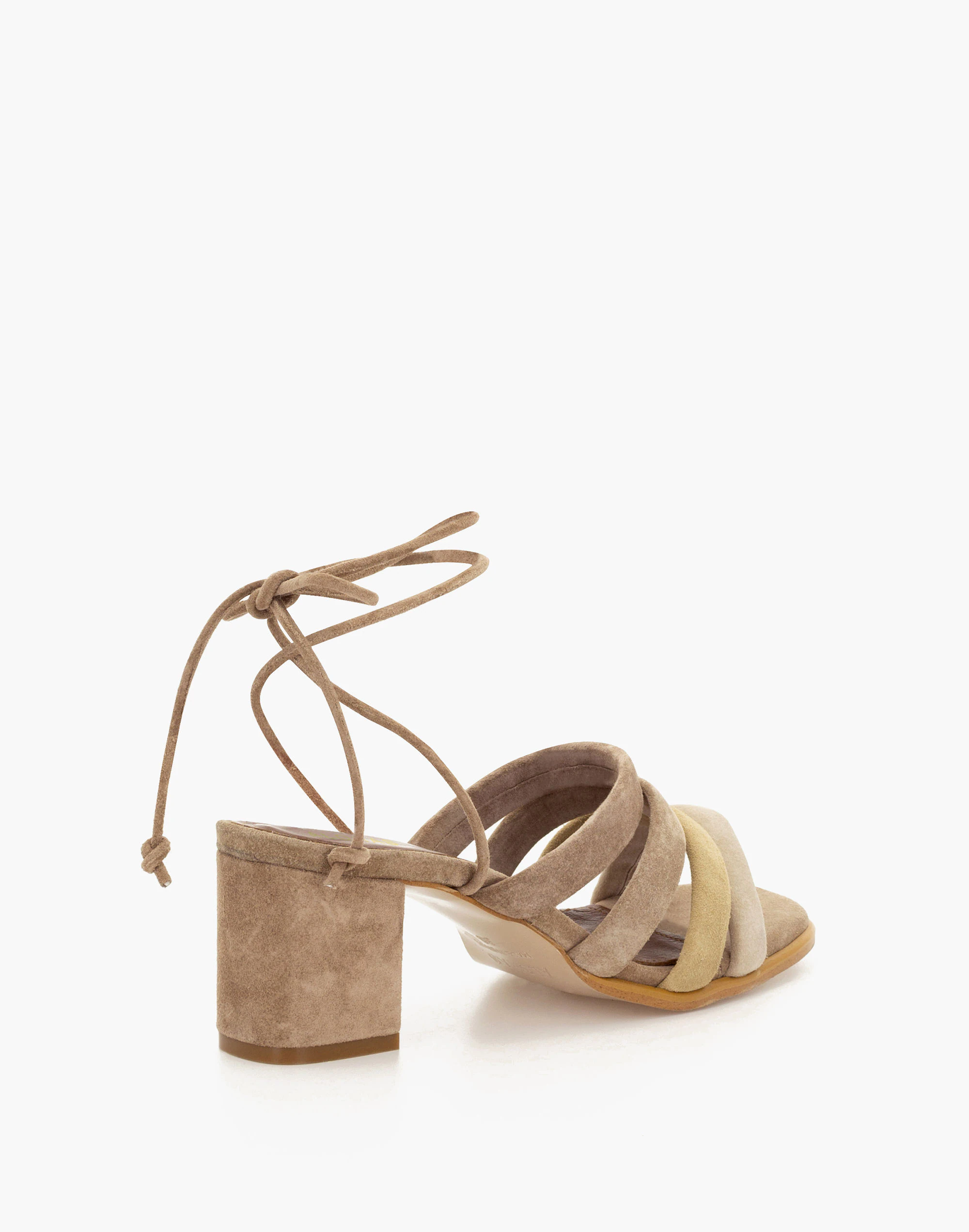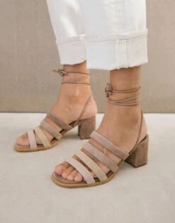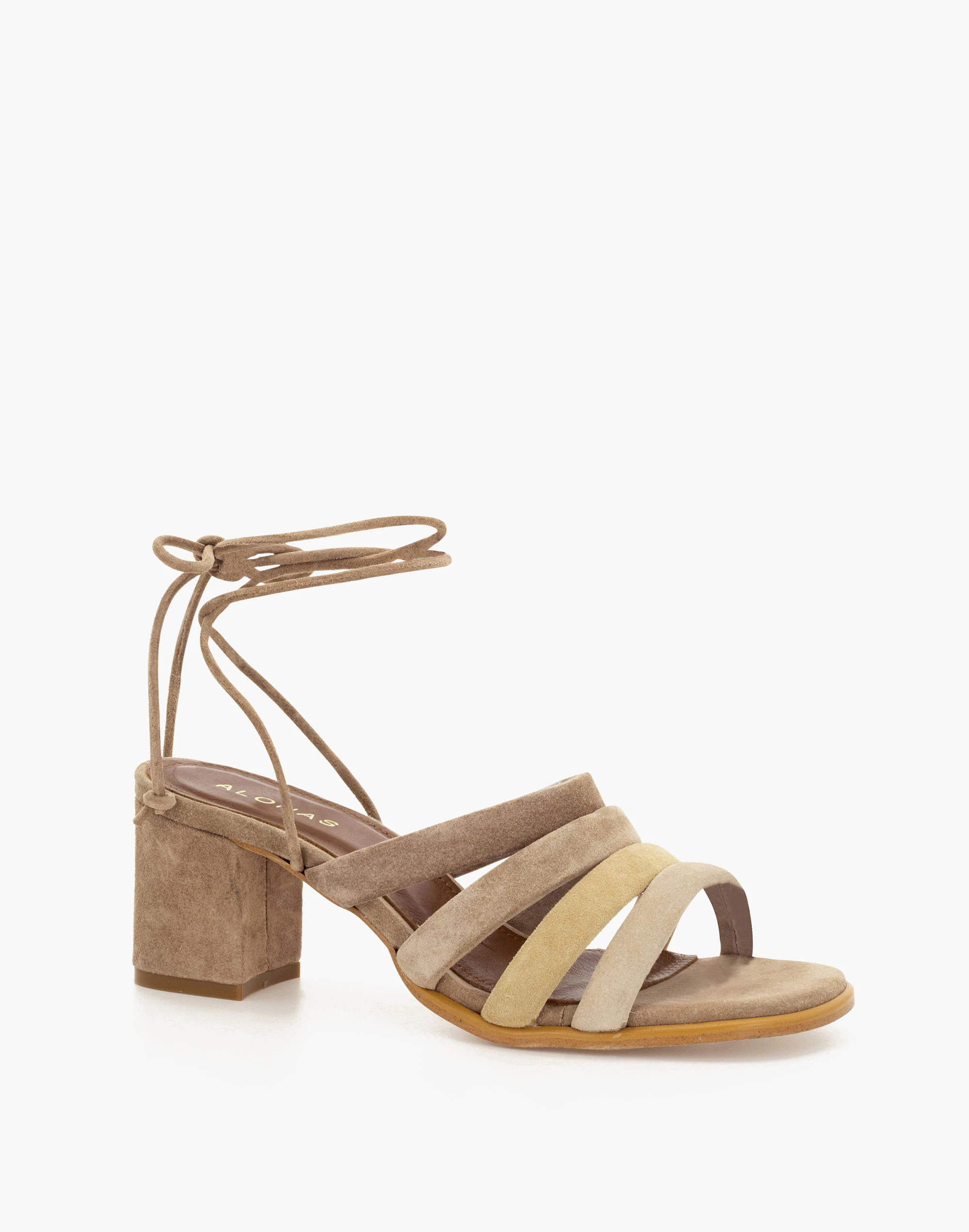 Based in Barcelona, ALOHAS is all about sustainable footwear with a fresh look. Made of tonal shades of suede, these strappy sandals lace up the ankle.