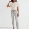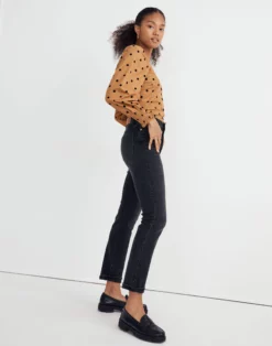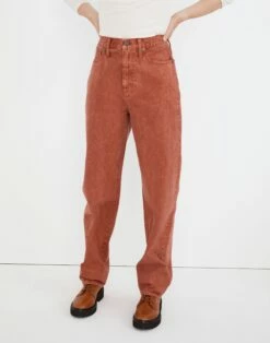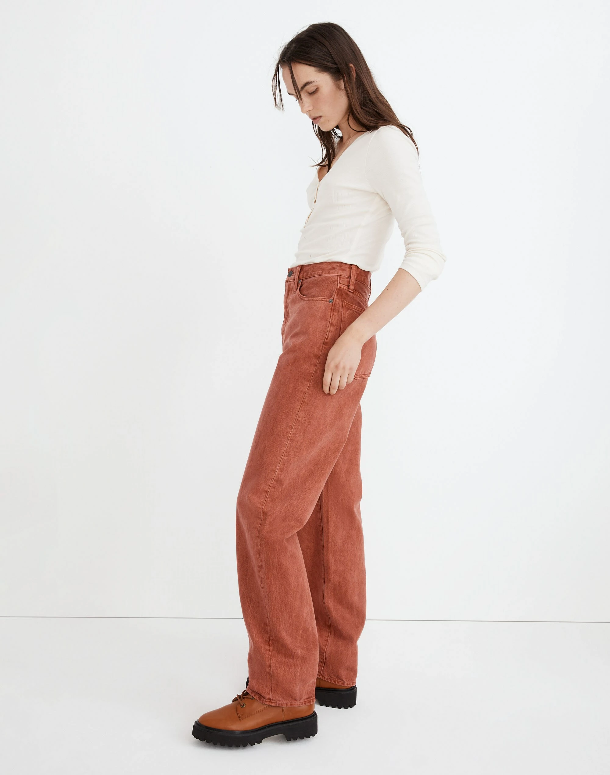 The cut: designed to go with a tiny tee, these baggy jeans are fitted through the high waist with slouchy straight legs. The fabric: garment-dyed for dimensional color, this premium 100 percent cotton denim has old-school character and zero stretch.