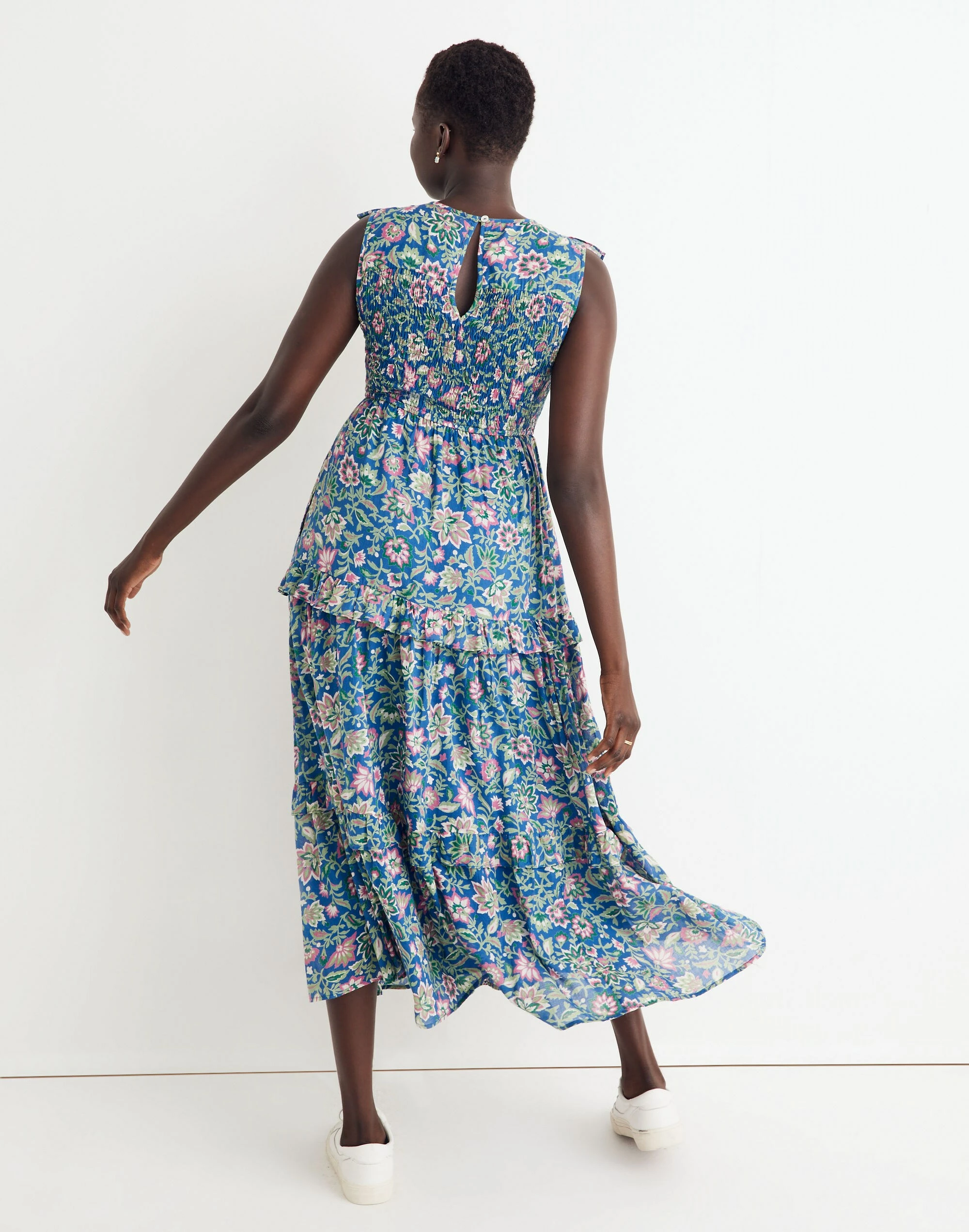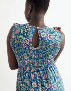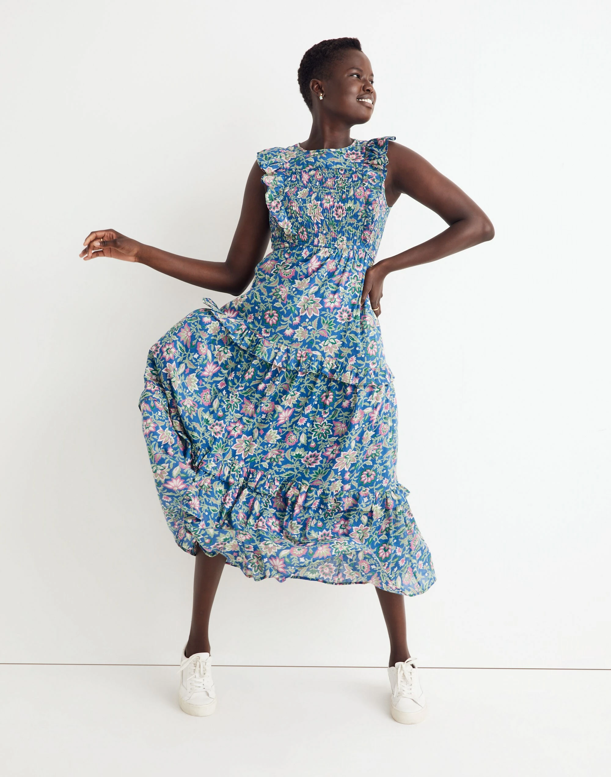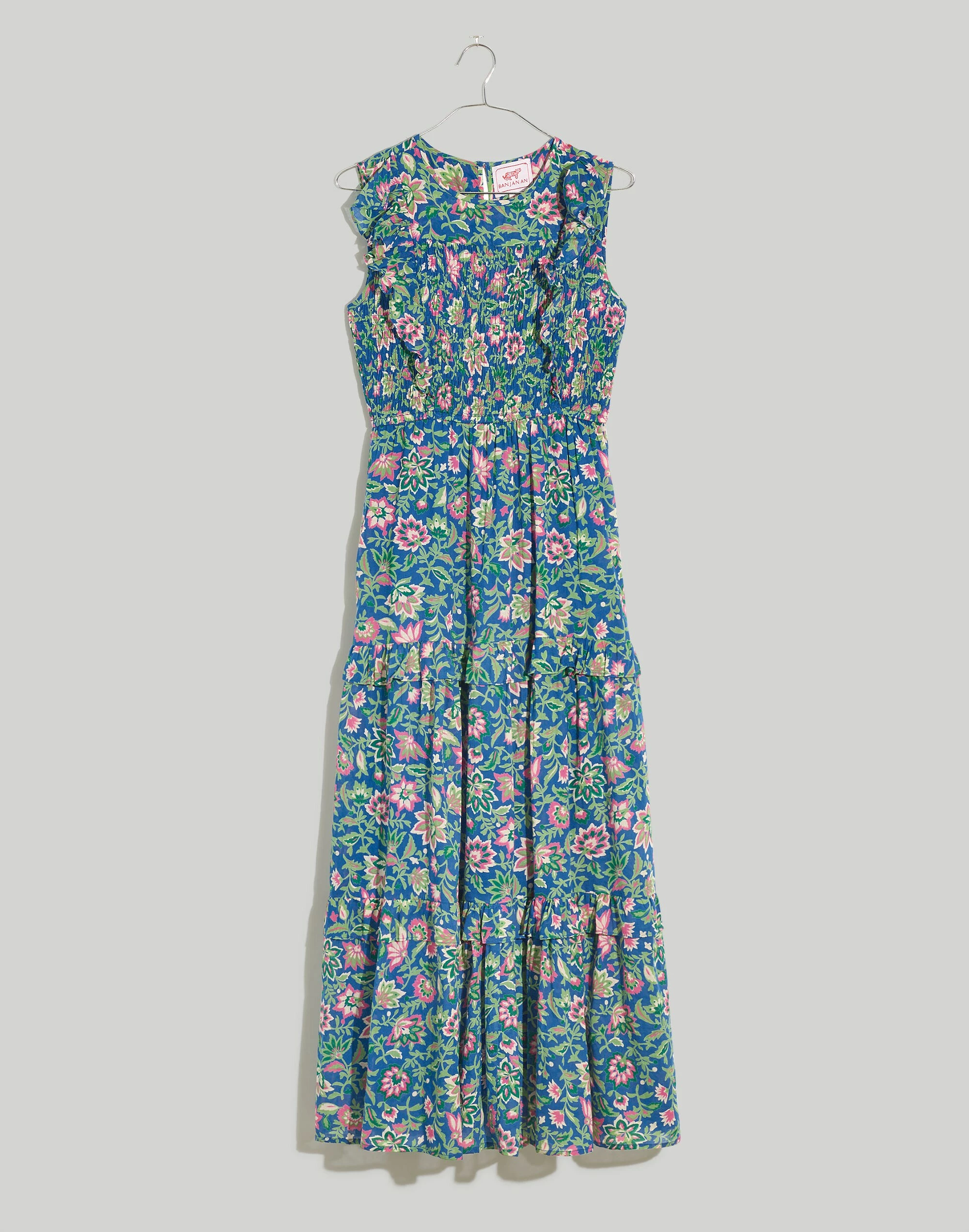 With a “joyous clothes, happy world” mantra, Jaipur-based Banjanan creates modern roam-the-world heirlooms that support the local textile community (fun fact: the brand’s name is a take on the Hindi word for wanderer). Made of light-as-air cotton voile, this fluttery sleeveless maxi dress has a smocked bodice and is trimmed with delicately tiered ruffles.