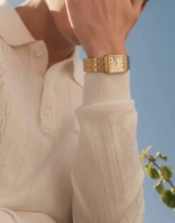Since 2009, Dallas-based siblings Amir and Shabeena Meghani have designed luxurious (and reasonably priced) timepieces featuring Japanese quartz movement. Well-appointed with sophisticated defining traits, the Virgil boasts a slim 26mm 18K gold-plated rectangle case that meets a tapered bracelet and fastens with a pusher clasp. With a gold brushed dial and refined sleek edges, the Virgil reflects the sentiment of a vintage timepiece.