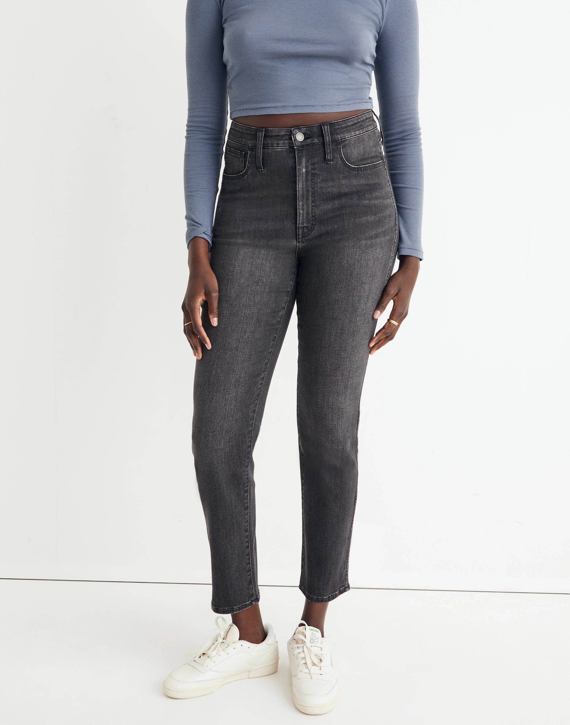 The cut: designed for an hourglass shape (see: narrower waist with a contoured band, a longer rise and a little extra room at the hips and thighs) and complete with the holds-you-in sorcery of our Magic Pockets® in front, these high-rise stovepipe jeans have slim straight legs. The fabric: vintage-y stretch denim that hugs the body and bounces back like a pro (aka no 3pm bagginess).