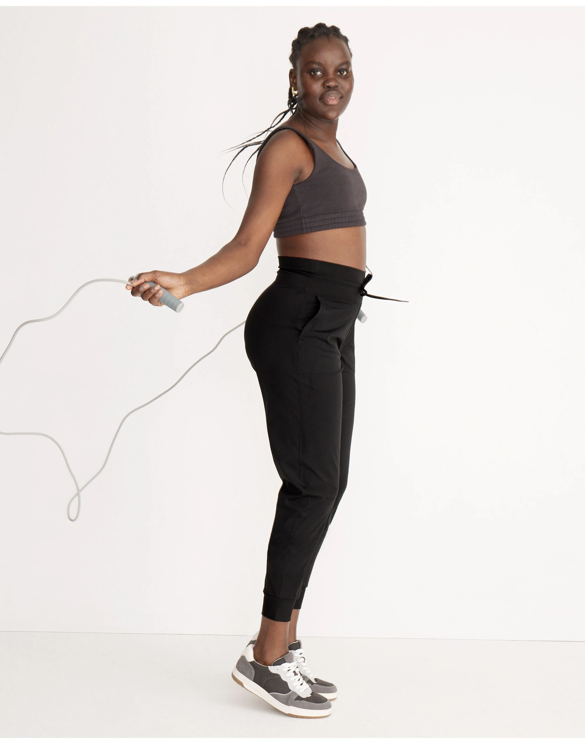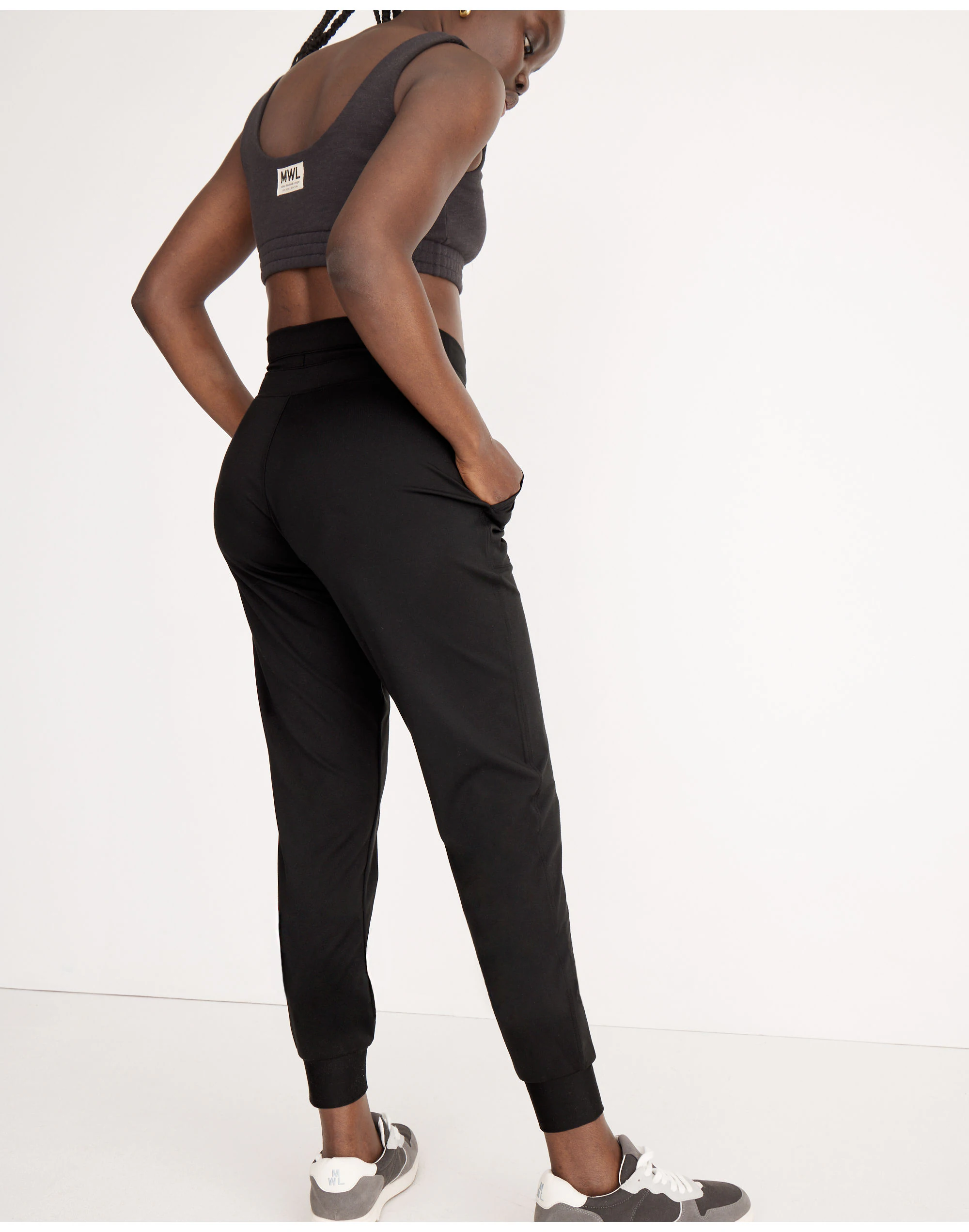 The fabric: engineered with four-way stretch, MWL Flex is supersoft, sweat-wicking and made using recycled materials. The fit: A mash-up of leggings and joggers, these curvy pull-on pants have a narrower waist with a gap-proof contoured band, a longer rise (for a rounder booty) and a little more room at the hips and thighs.