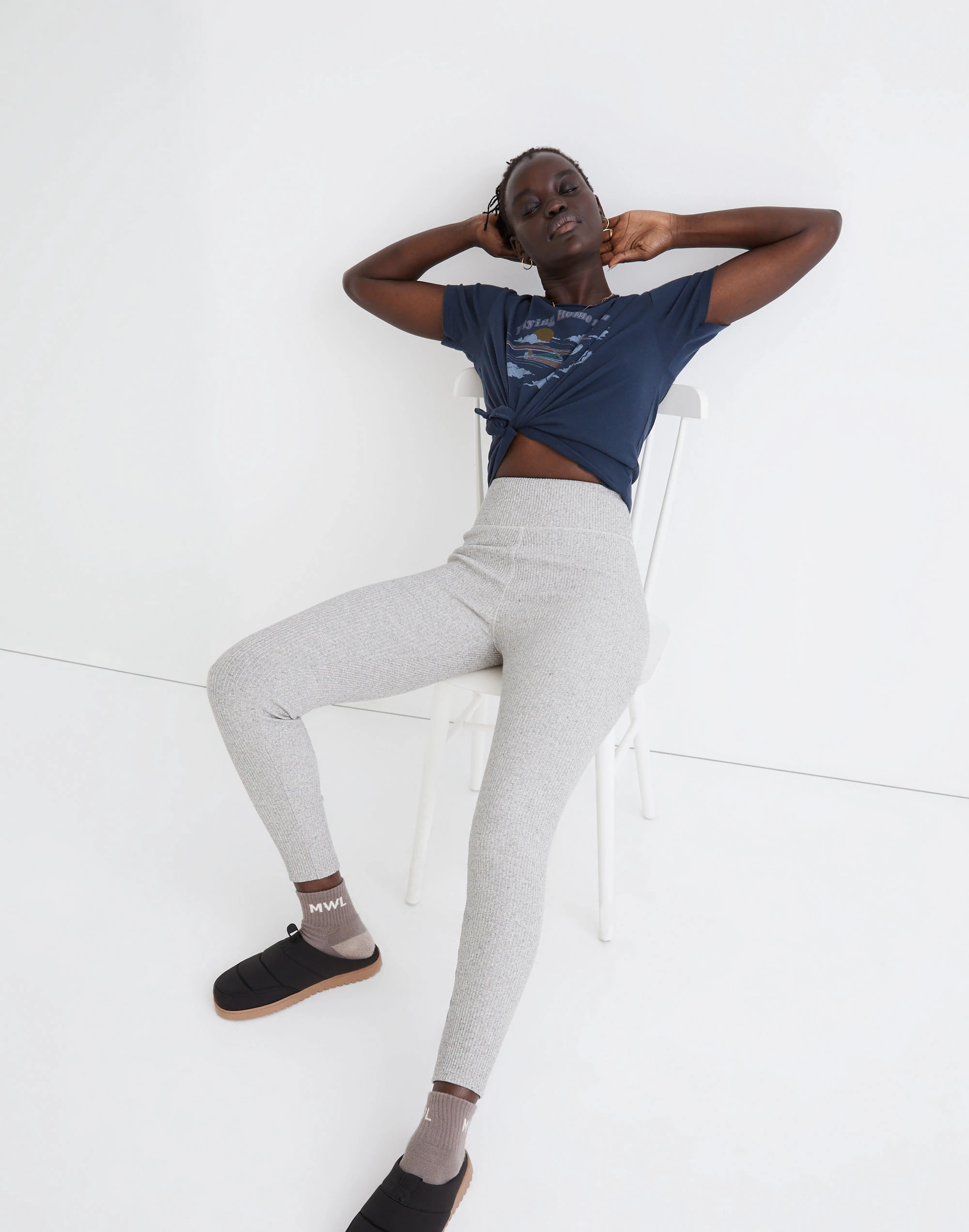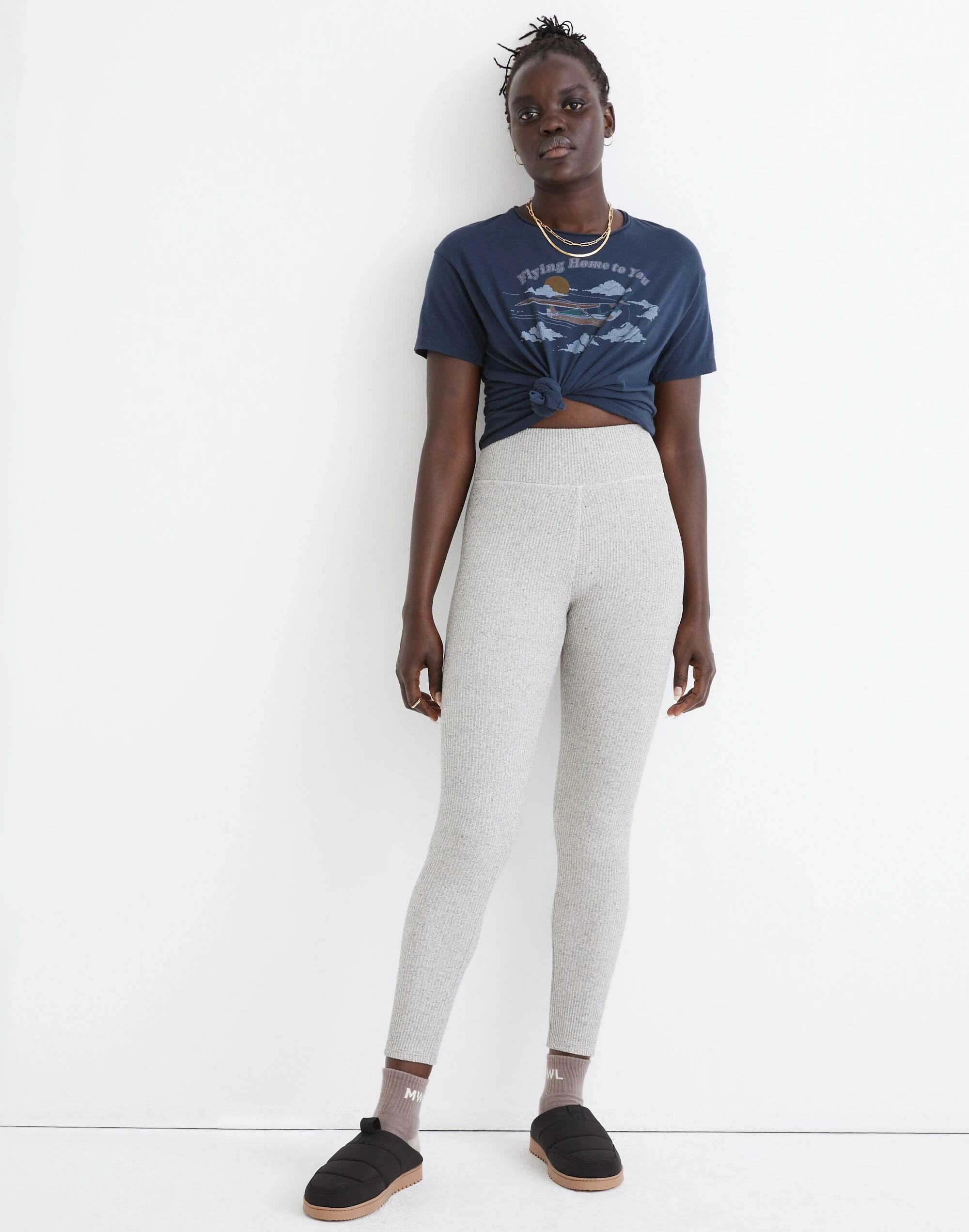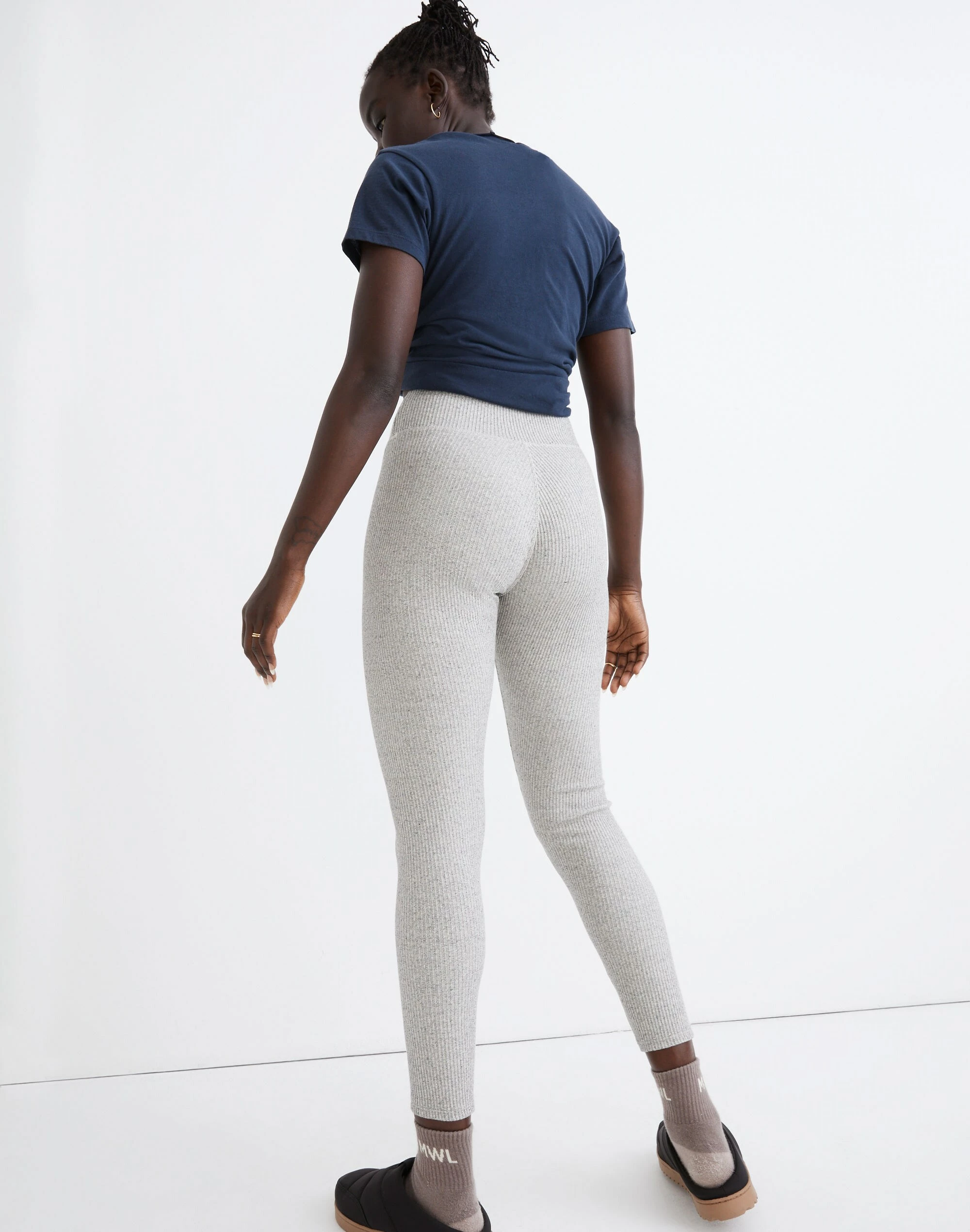 The fabric: Warm, cotton-y and ribbed for holds-you-in comfiness. The fit: taking a cue from our best-selling curvy jeans, these 25″ leggings have a narrower waist with a gap-proof contoured band, a longer rise (for a rounder booty) and a little more room at the hips and thighs.