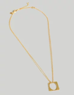 An easy layered look in one cool necklace, it features a geometric cutout pendant hung from a dainty double chain.