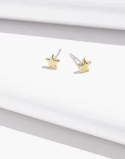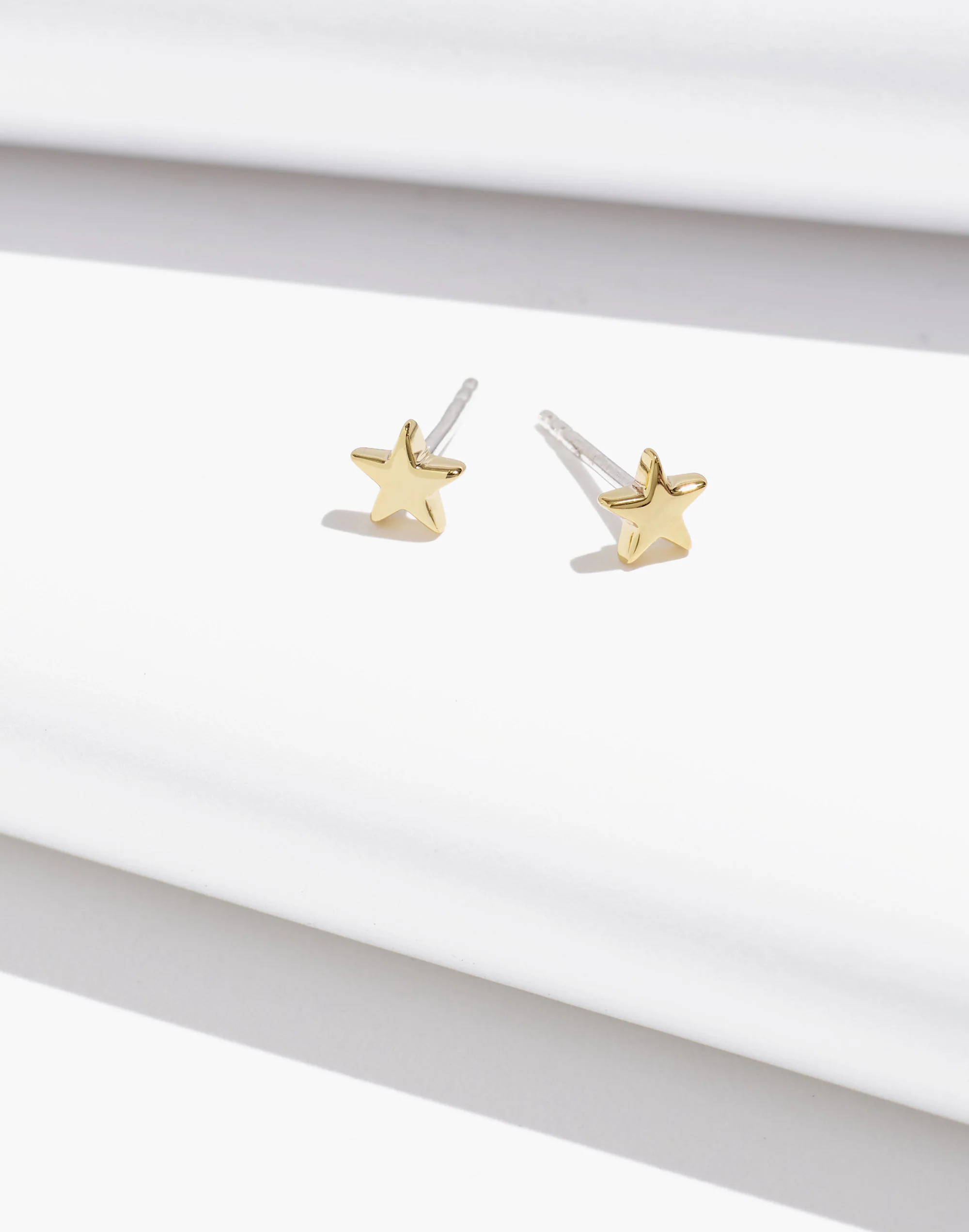 Crafted from 14k gold over sterling silver, the pieces in our Delicate Collection are future keepsakes meant to be layered and worn every single day (think of them as your jewelry BFFs). These tiny star-shaped stud earrings add a lowkey touch of celestial sparkle.