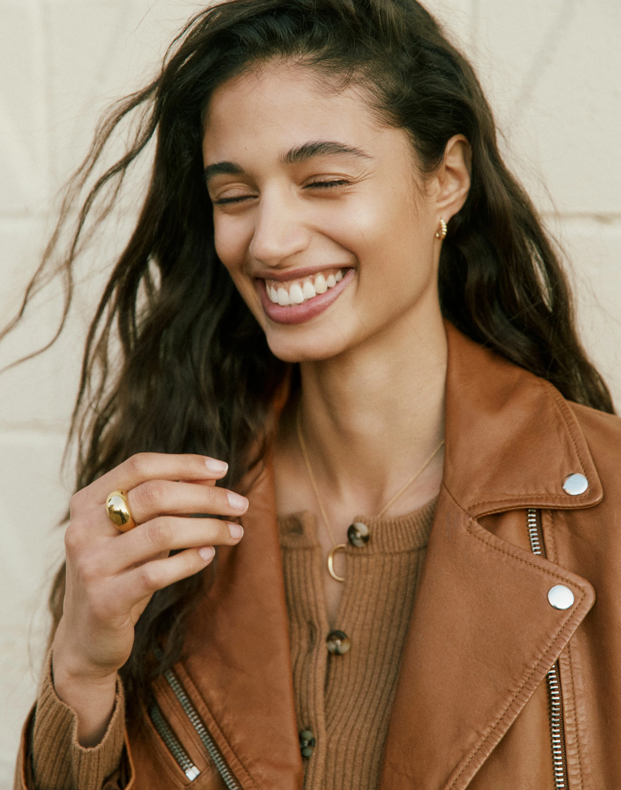 Weighty and sculptural, this shiny gold-plated brass dome ring is the kind of bold style that can become a signature piece.