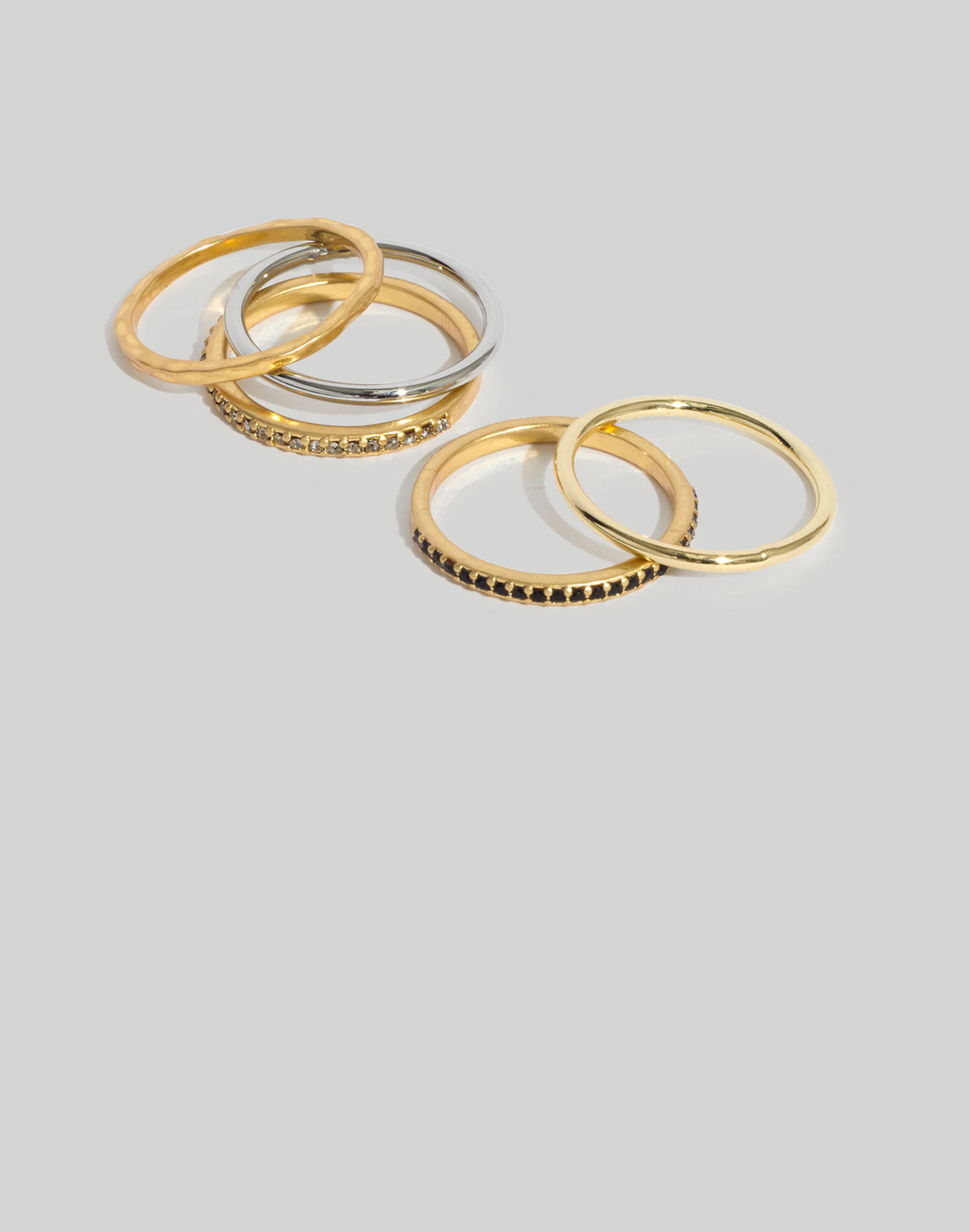 Stack this set of slender bands or mix individual rings into your current rotation.