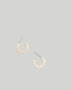 Mini huggie hoop earrings strung with tiny freshwater pearls. Love these on multiple piercings.