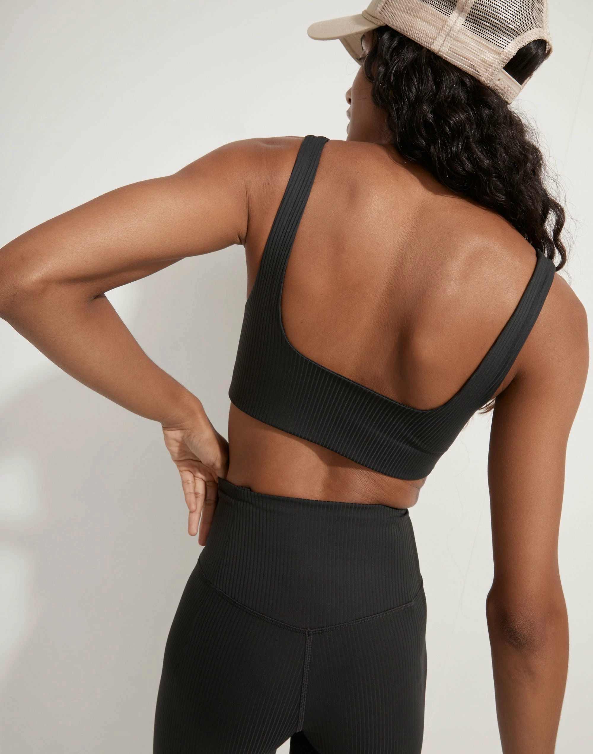Girlfriend Collective transforms plastic waste into luxurious, breathable and well-fitting activewear. Crafted in sweat-wicking ribbed compression fabric, this square-neck sports bra keeps 10 bottles out of landfills.