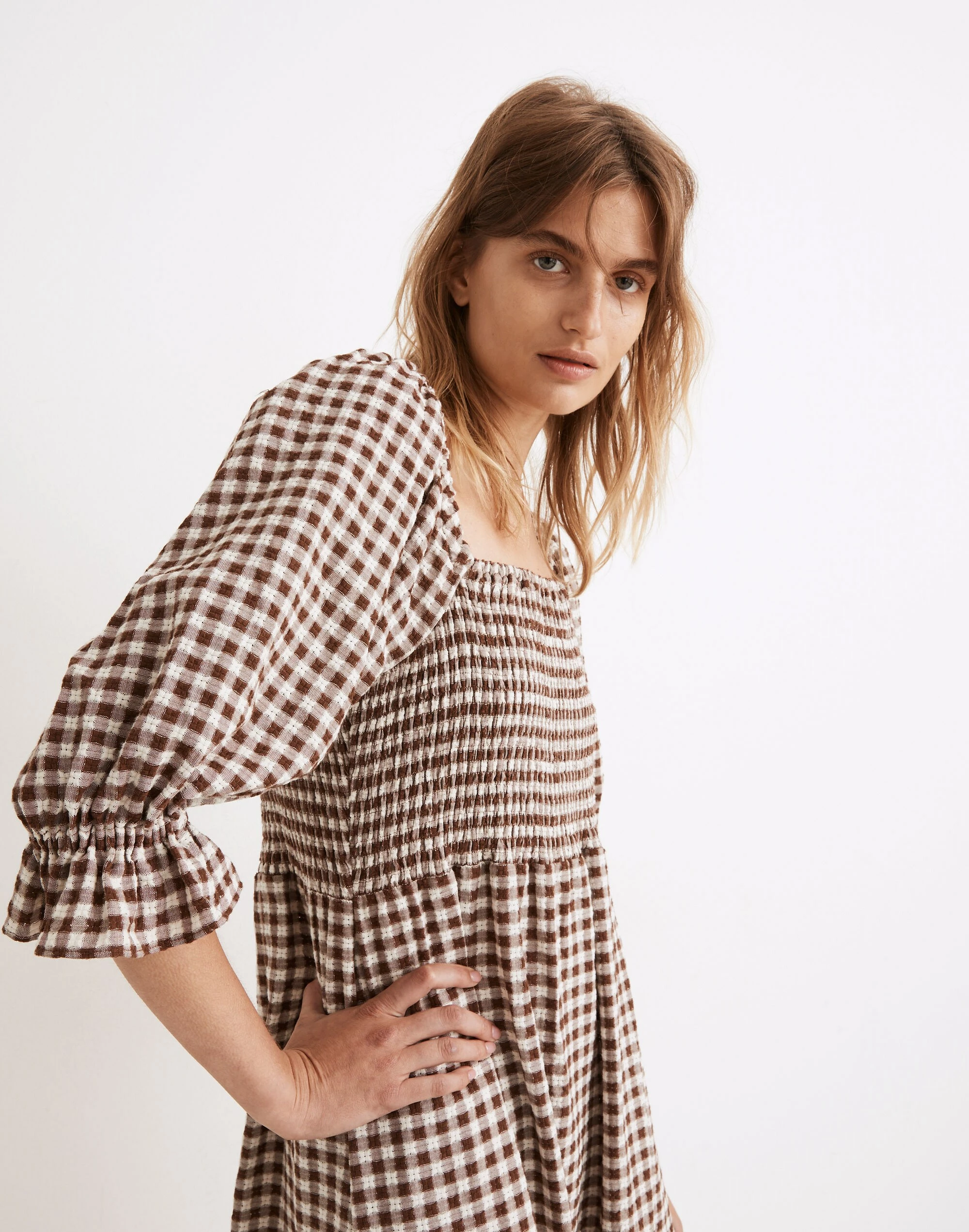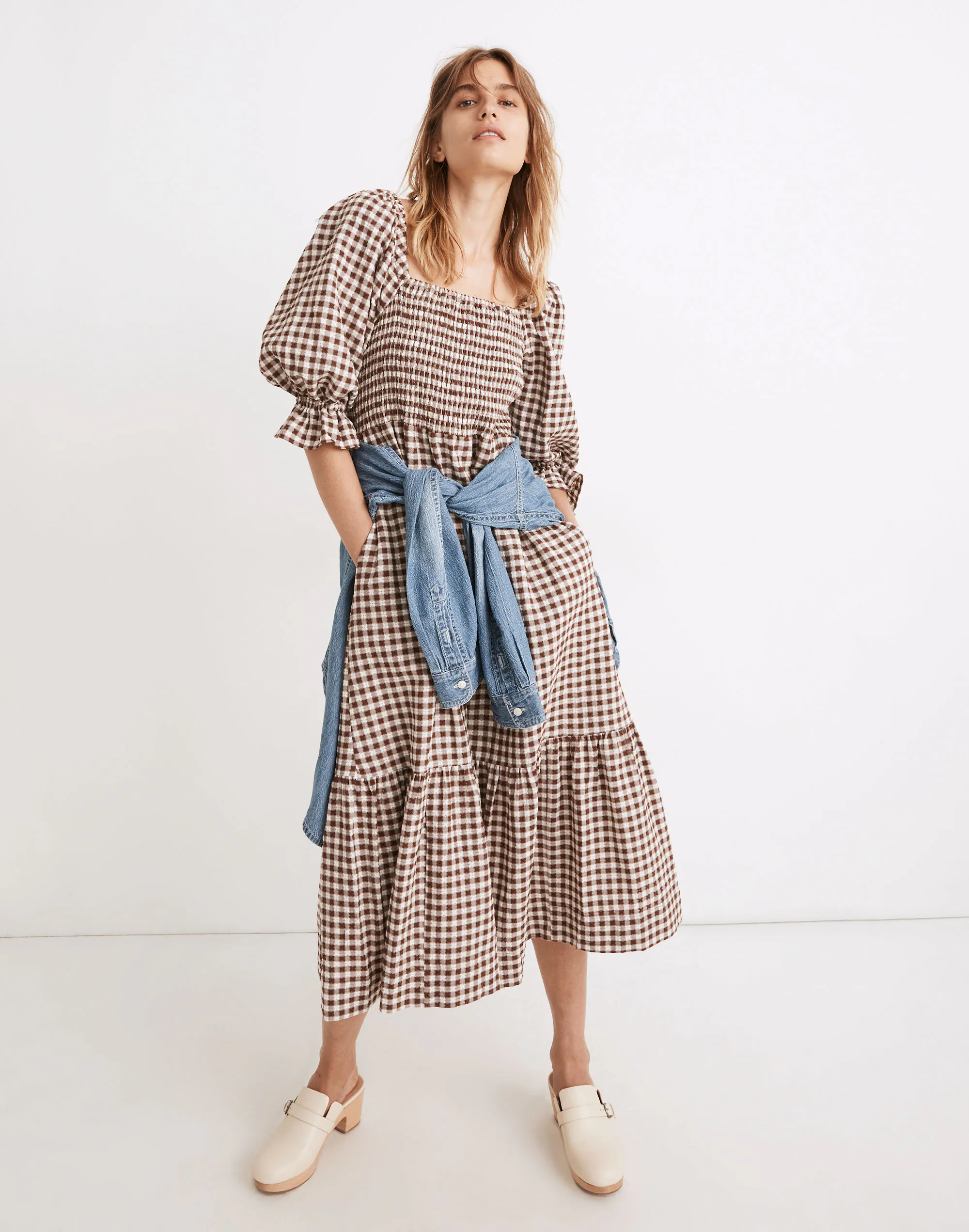 The prettiest way to be comfy (and a best seller), this textured gingham midi dress has elbow-length puff sleeves and a stretchy smocked bodice, plus pockets (!). Easy on the body but so special, you’ll want to wear it everywhere you go.