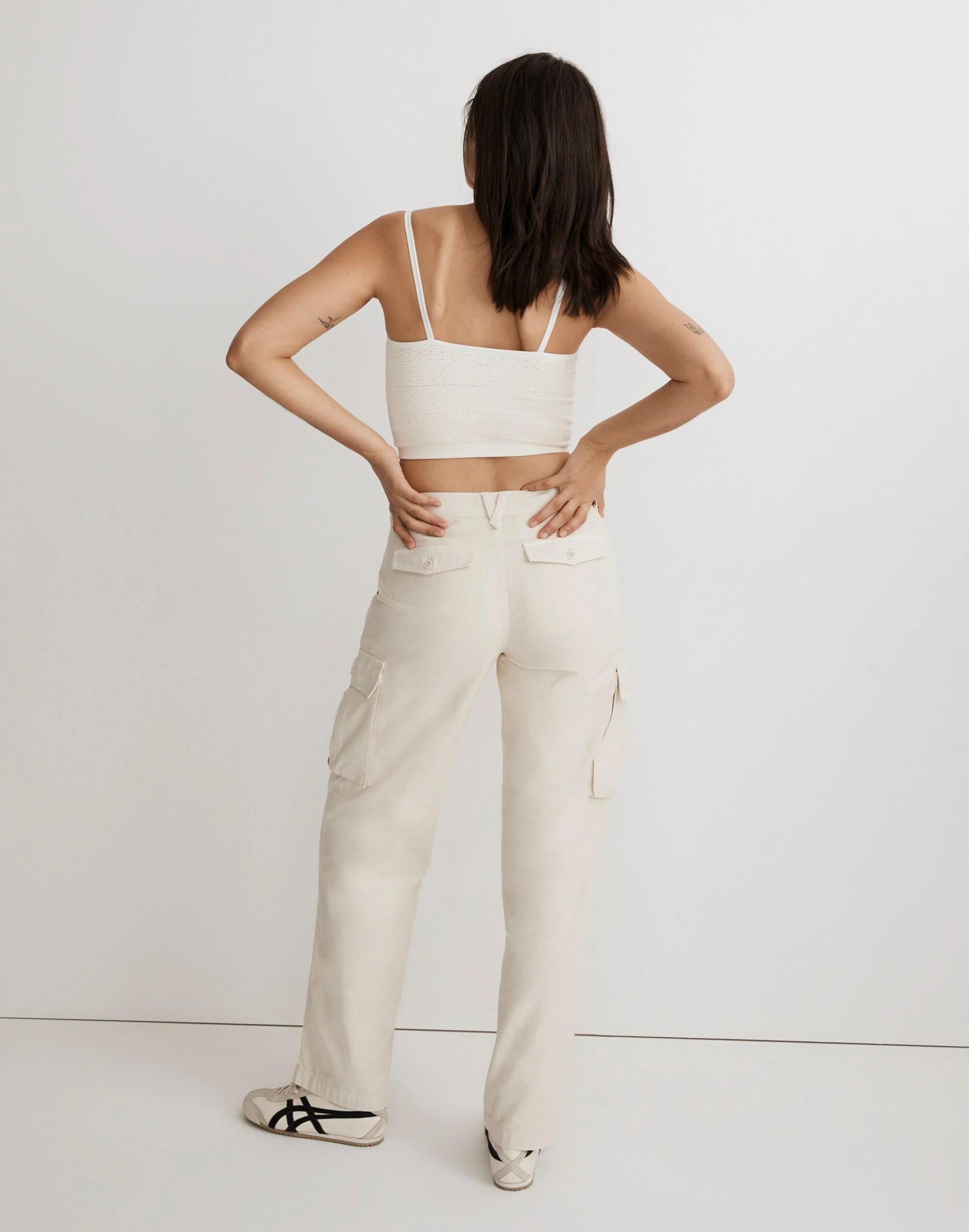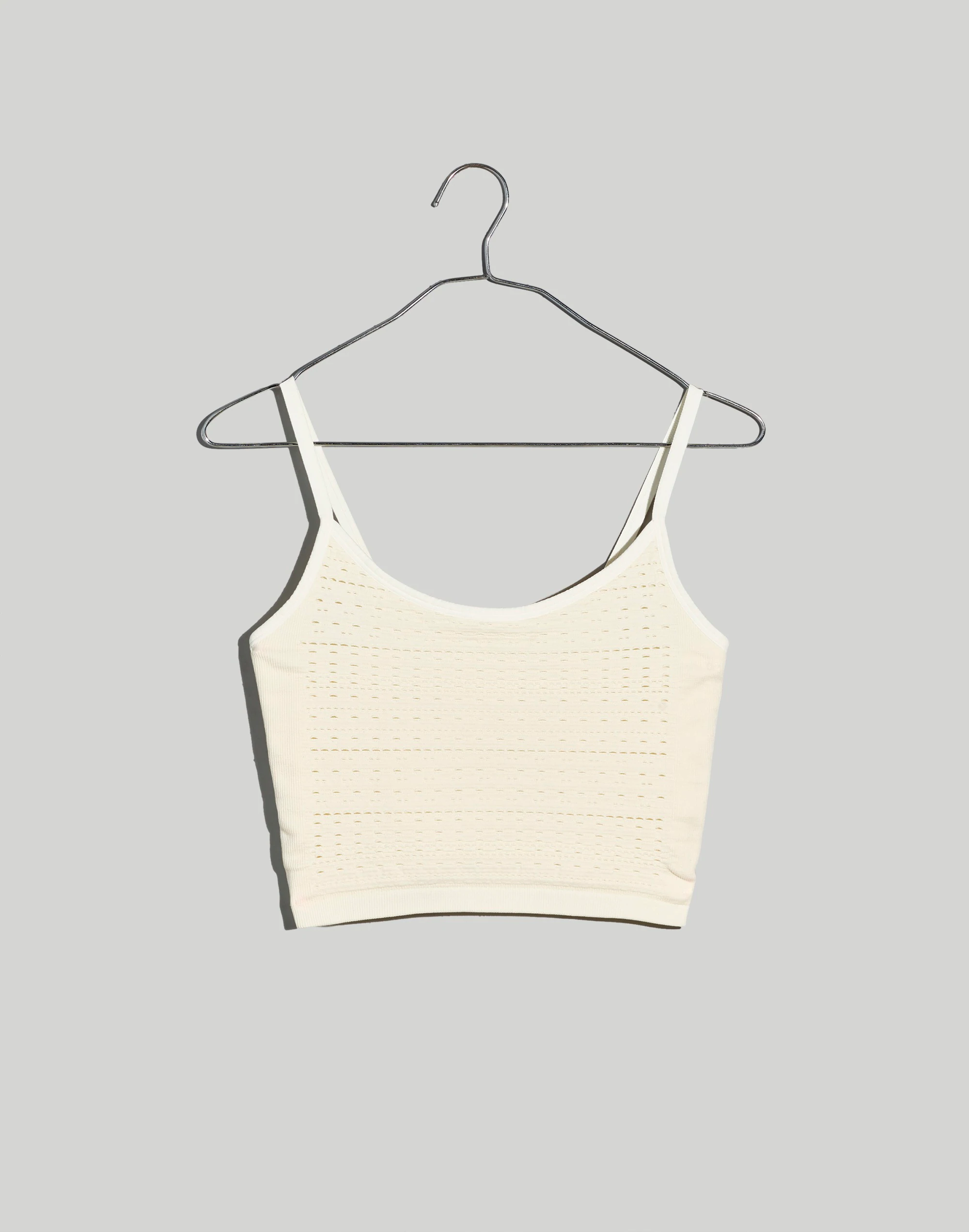 The fabric: double layered, supersoft and buttery against the skin, this brand-new pointelle version of our MWL Seamless has serious bounce-back power (and is made with recycled nylon). The fit: slim and cropped, this versatile tank has delicate cami straps.
