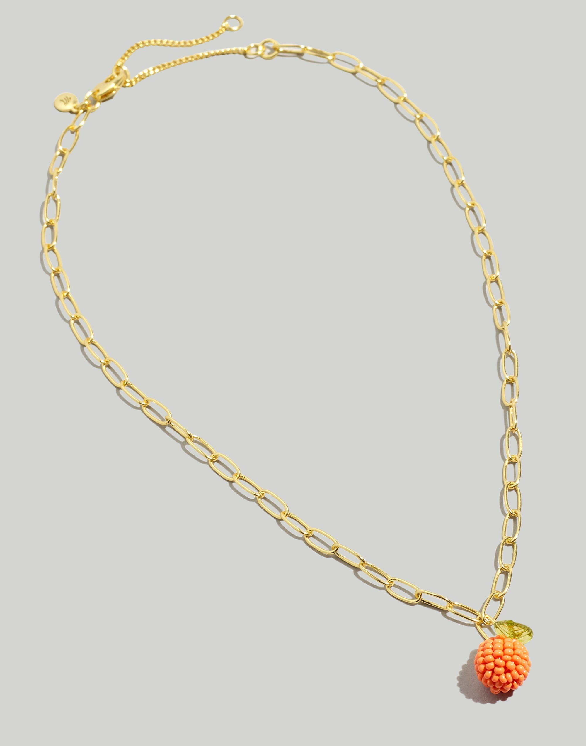 Sweet and bright, this citrus-inspired necklace adds a pop of color to any look.