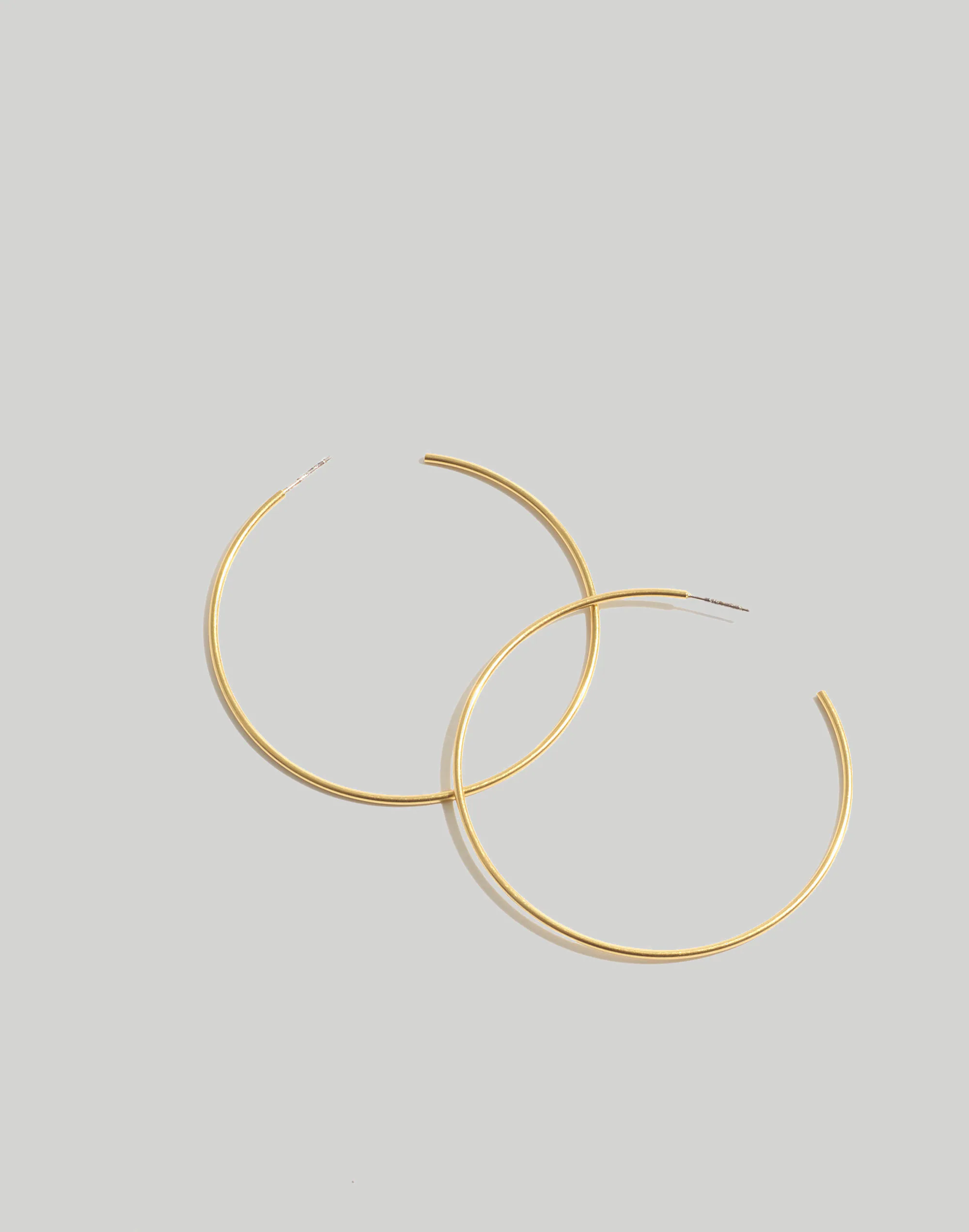 Oversized hoop earrings with a subtle matte finish. Highly recommended with a pretty dress.