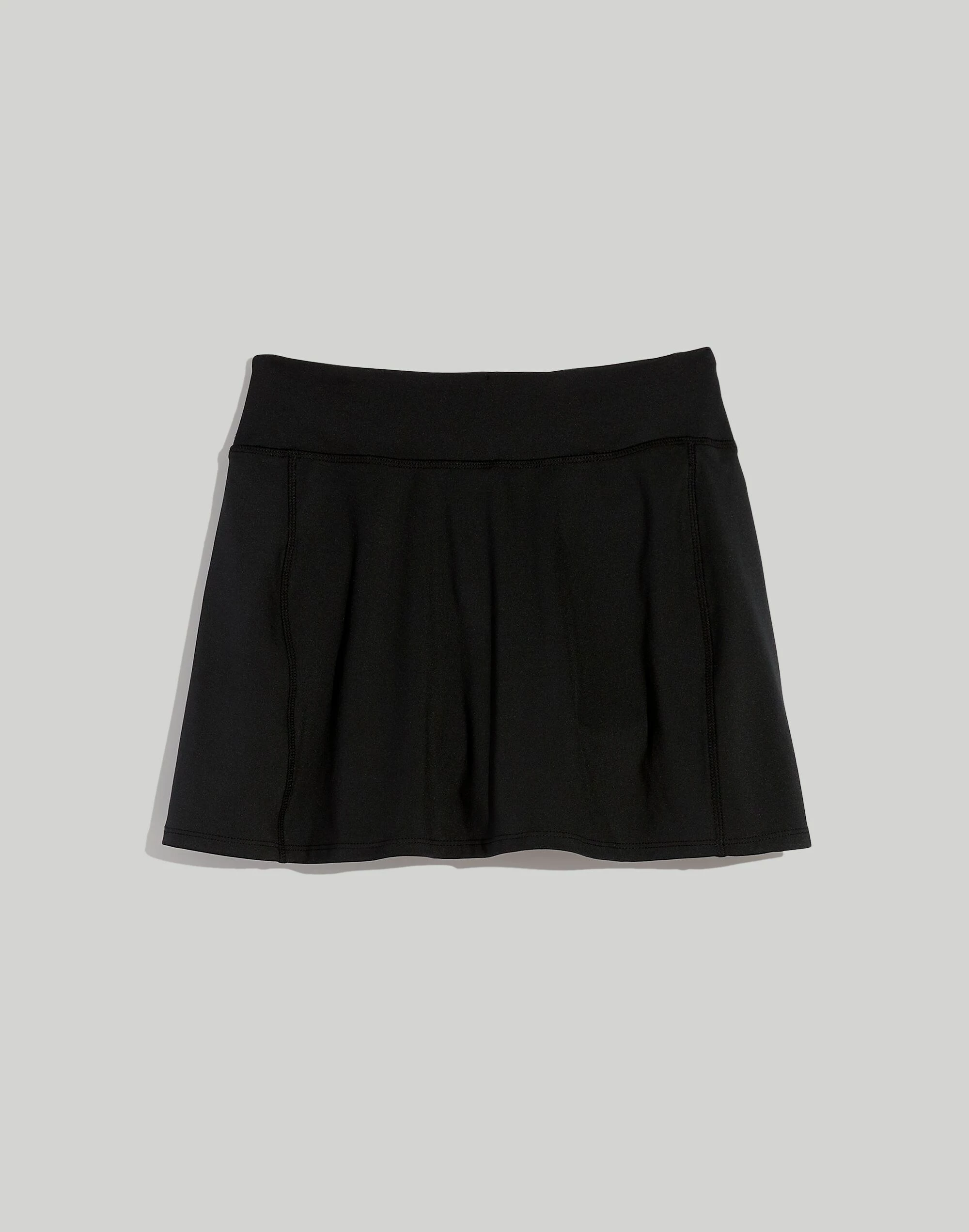 The fabric: engineered with four-way stretch, MWL Flex is supersoft, sweat-wicking and made using recycled materials (13 water bottles, in this case). The fit: seamed in the back for a booty-friendly rearview, this exercise mini skirt has built-in biker shorts, plus, tons of pockets including a special bottom-entry pocket to store your tennis ball.