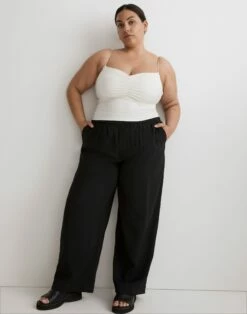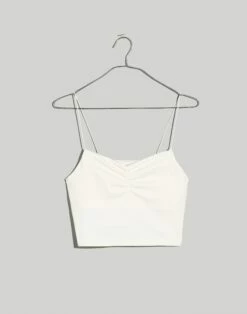 The fabric: engineered with four-way stretch, MWL Flex is supersoft, sweat-wicking and made using recycled materials. The fit: a cropped tank with skinny bungee straps, a ruched sweetheart neckline and built-in shelf bra. The set: try it with the matching skort or your favorite high-rise jeans.