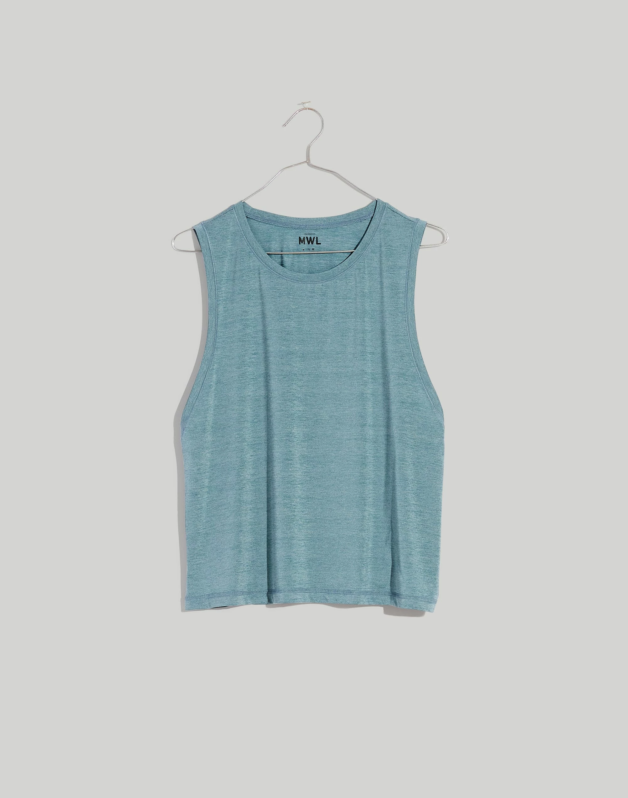 The fabric: made of recycled polyester, it’s breezy, sweat-wicking and offers UPF 40+ sun protection. The fit: designed for running (and layering over a sports bra), this tank has low armholes and a loose fit to give you both kinds of cool.