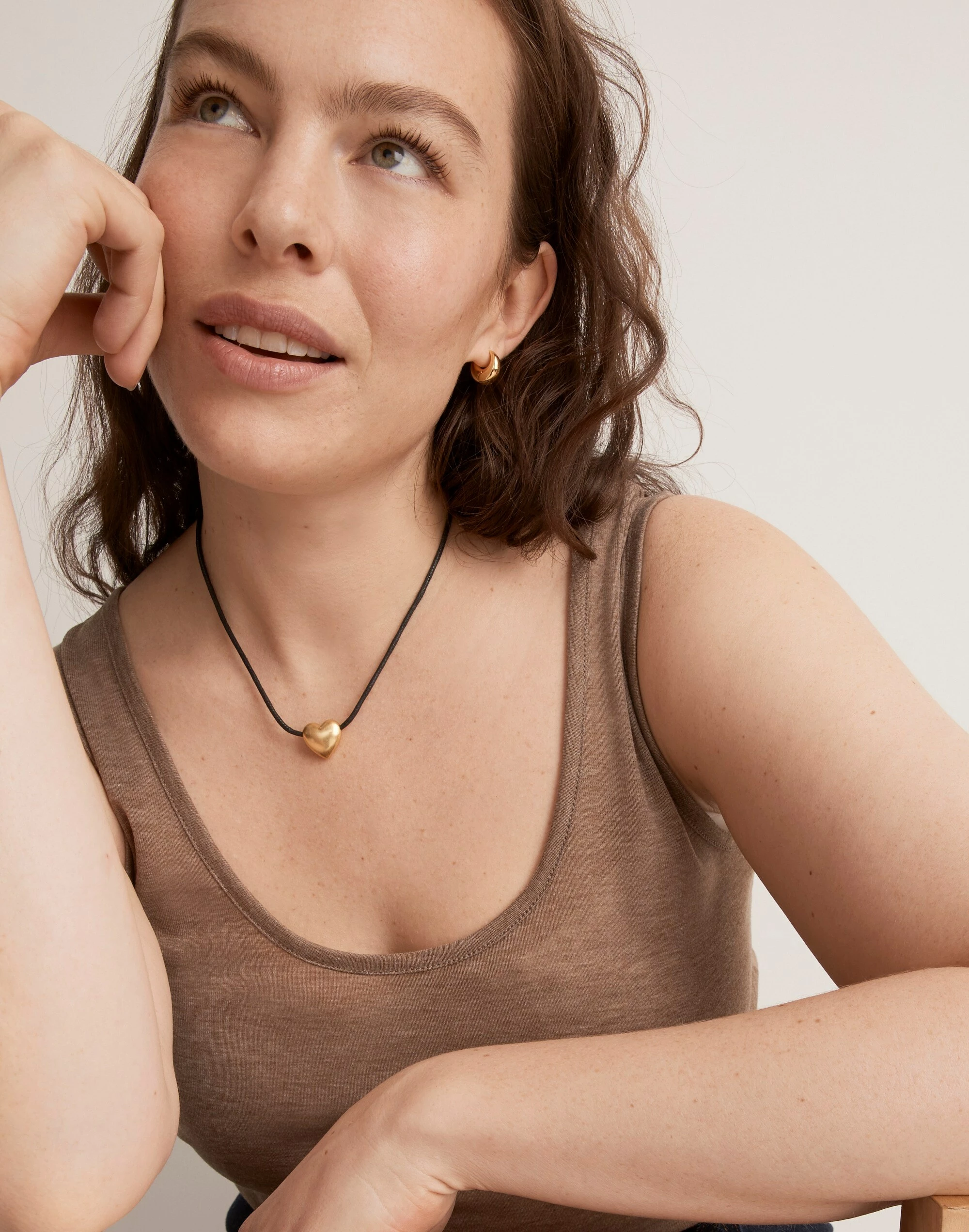 Featuring a puffed heart charm strung on waxed cotton cord, this choker necklace adds a bit of edge to your necklace stack.
