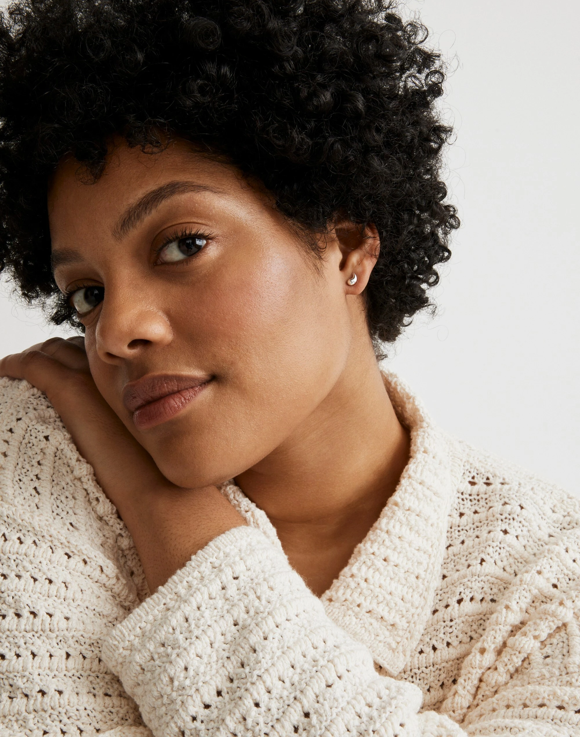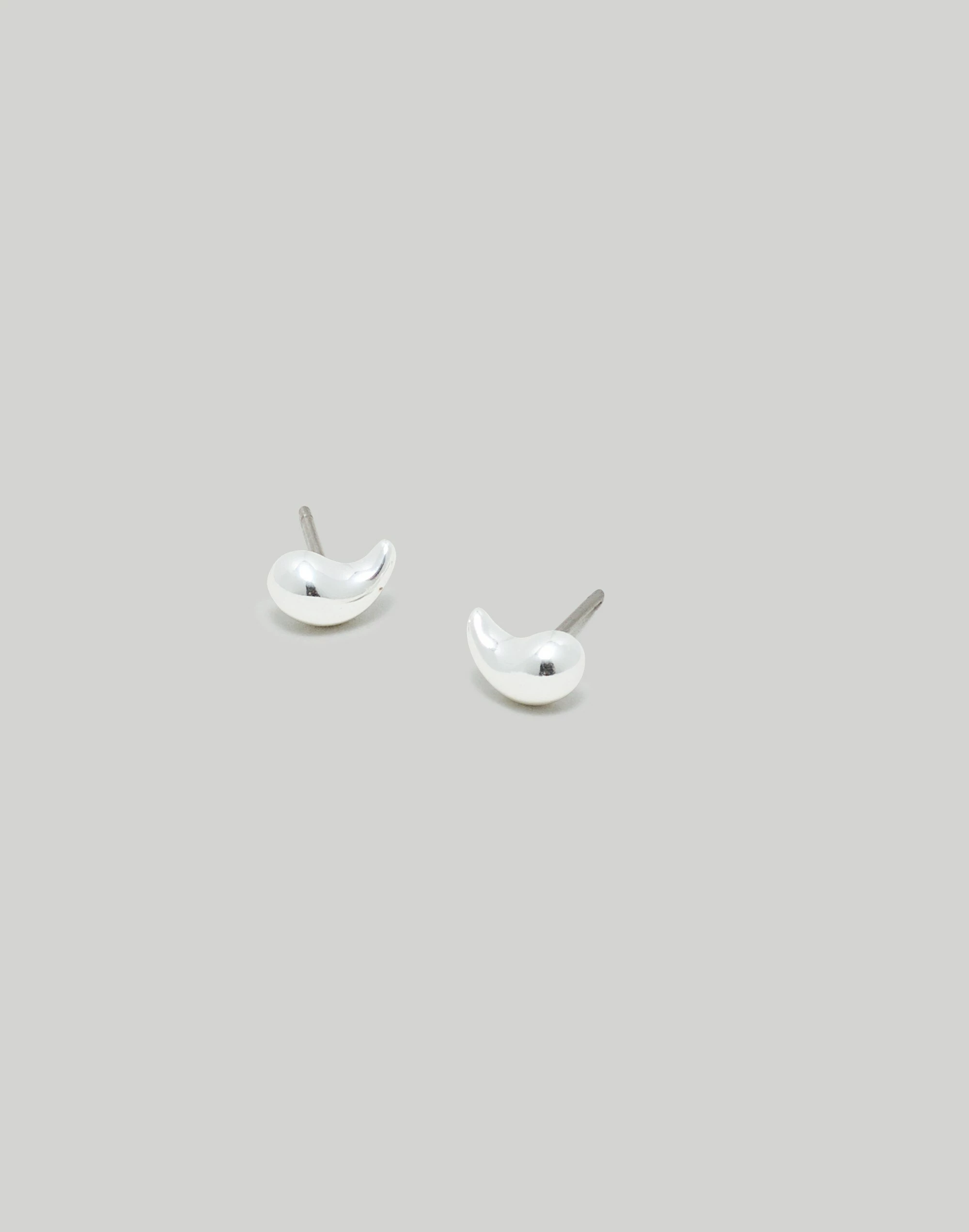 Cast in shiny silver-plated brass, these earrings feature puffy teardrop-shaped studs.