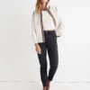 The cut: Pull-on easy, these high-rise jeans are skinny to the knee before flaring into a demi-boot leg that’s slit to show off your shoes. The fabric: premium vintage-y stretch denim that hugs the body and bounces back like a pro (aka no 3pm bagginess).