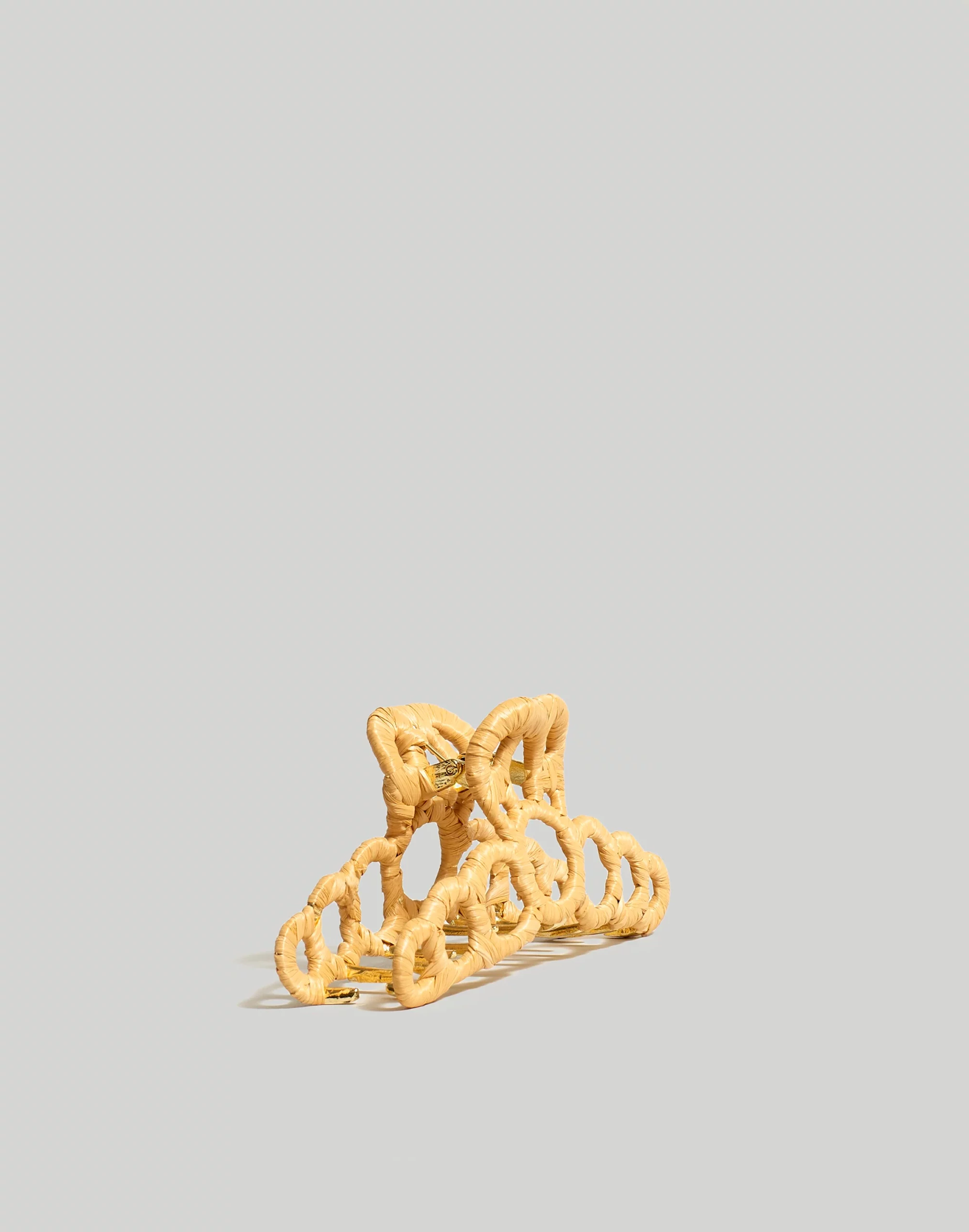 Put your hair up in a flash (and effortlessly channel the ’90s) with this cutout acrylic claw clip wrapped in raffia.