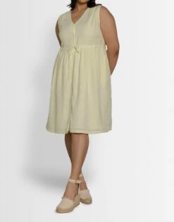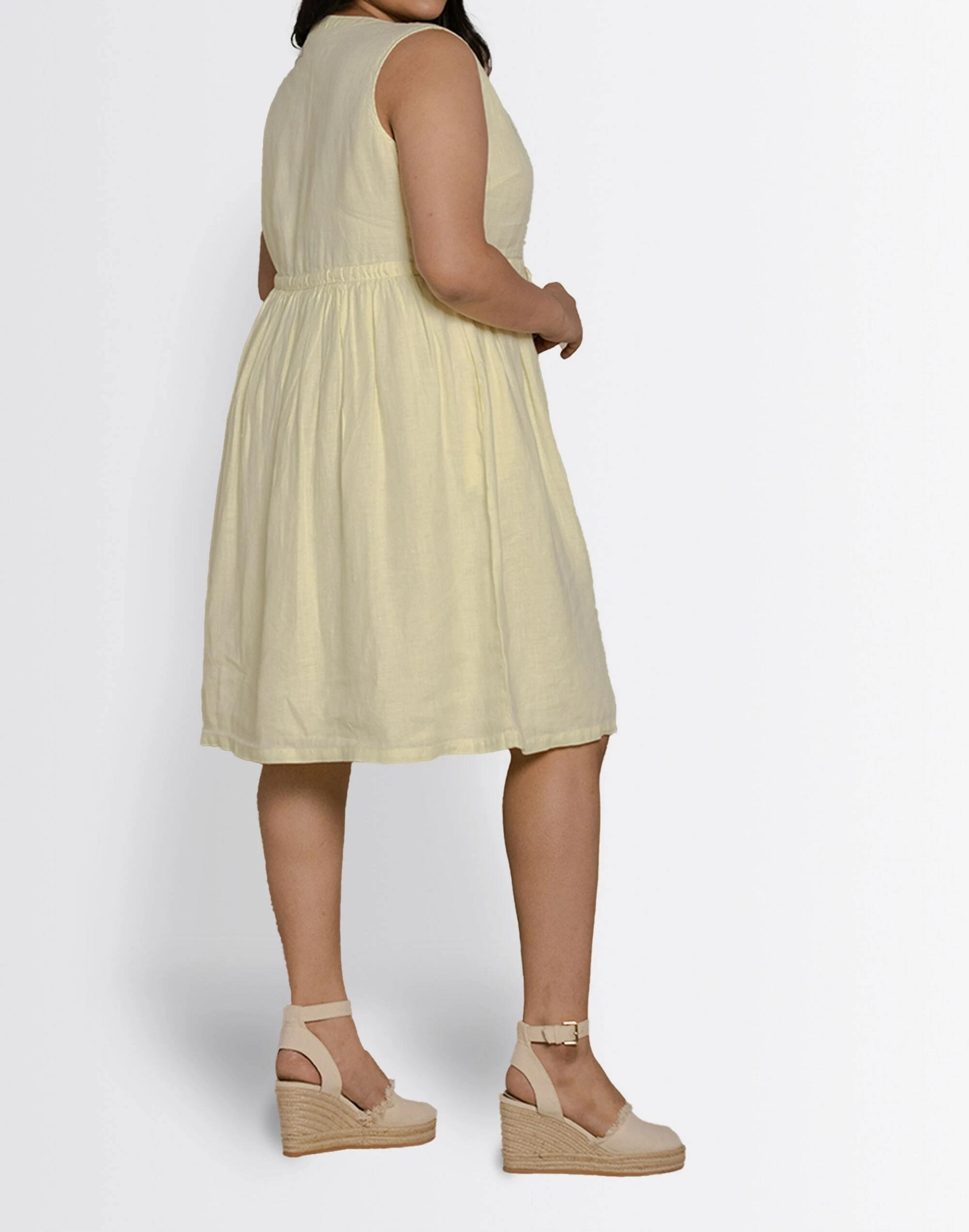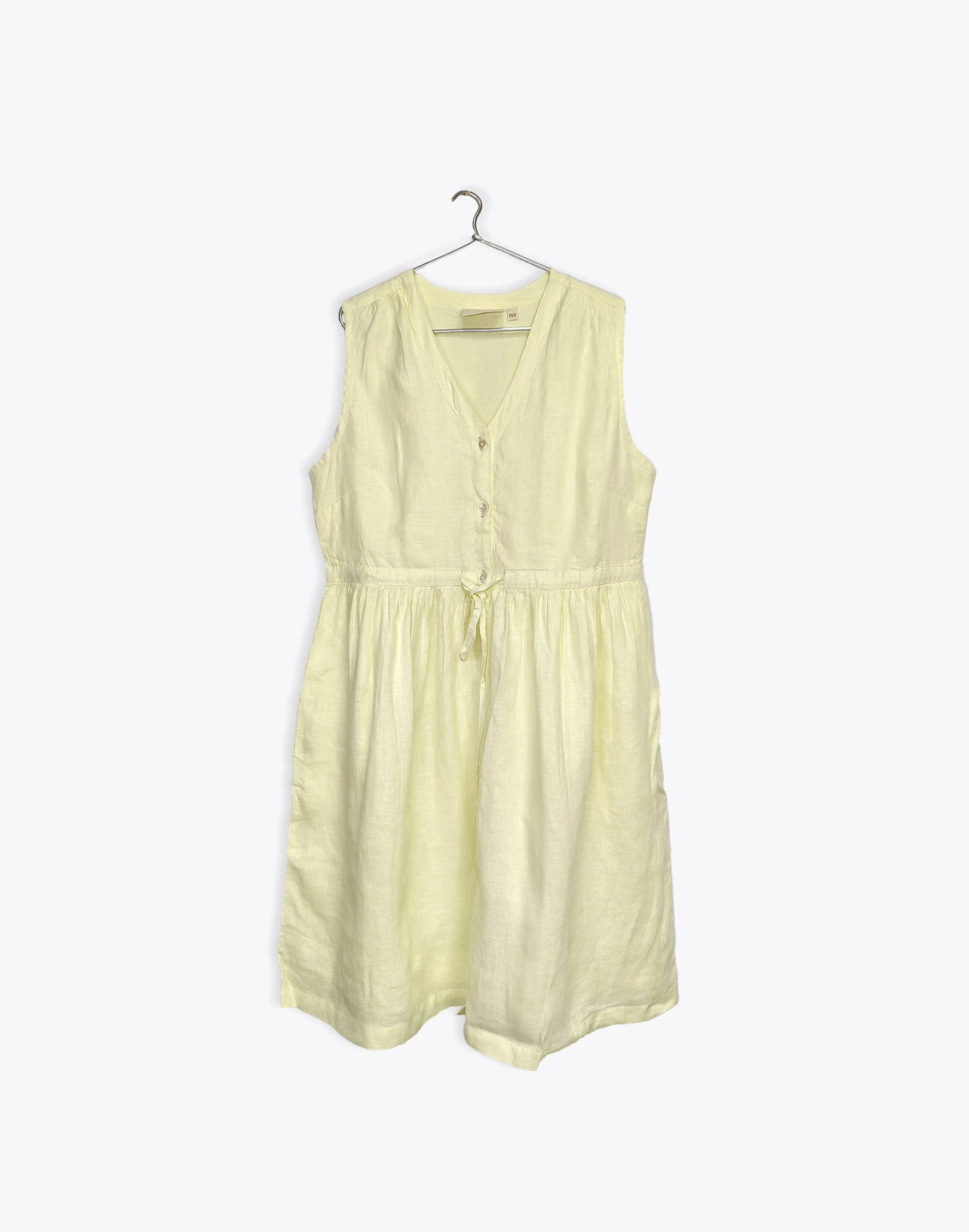 Pronounced “restore,” Reistor is devoted to sustainably produced clothing that can last a lifetime. Made from low-impact hemp, this sleeveless button-down dress has an adjustable drawstring waist and handy pockets.