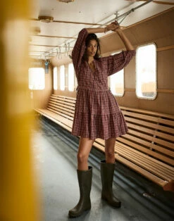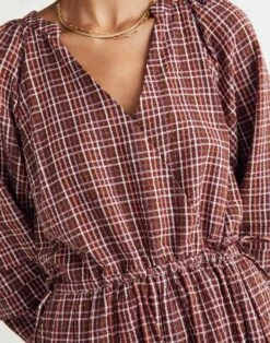 Made of a lightweight cotton seersucker, this mini dress has a wrap bodice, bracelet-length raglan sleeves and a tiered A-line skirt. With an adjustable tie at the comfy elastic waist, it’s a supercute style that’ll definitely turn heads.