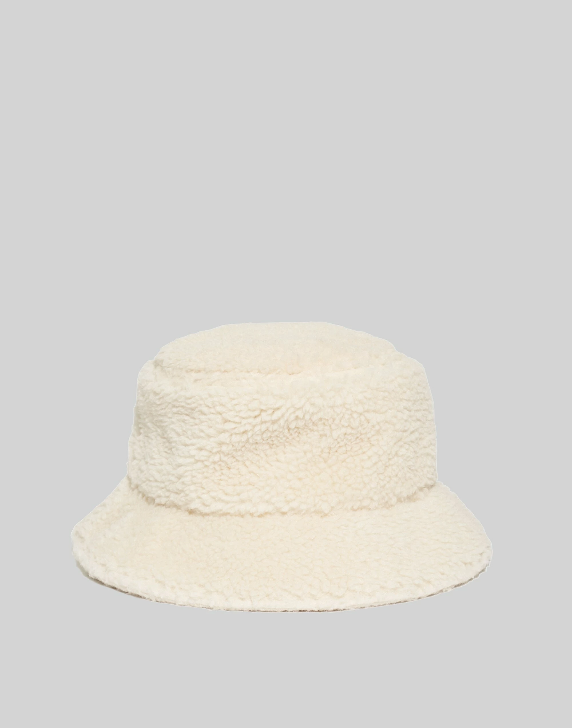 Cozy and cute, this fuzzy Sherpa bucket hat will keep things toasty all through the chilly months.