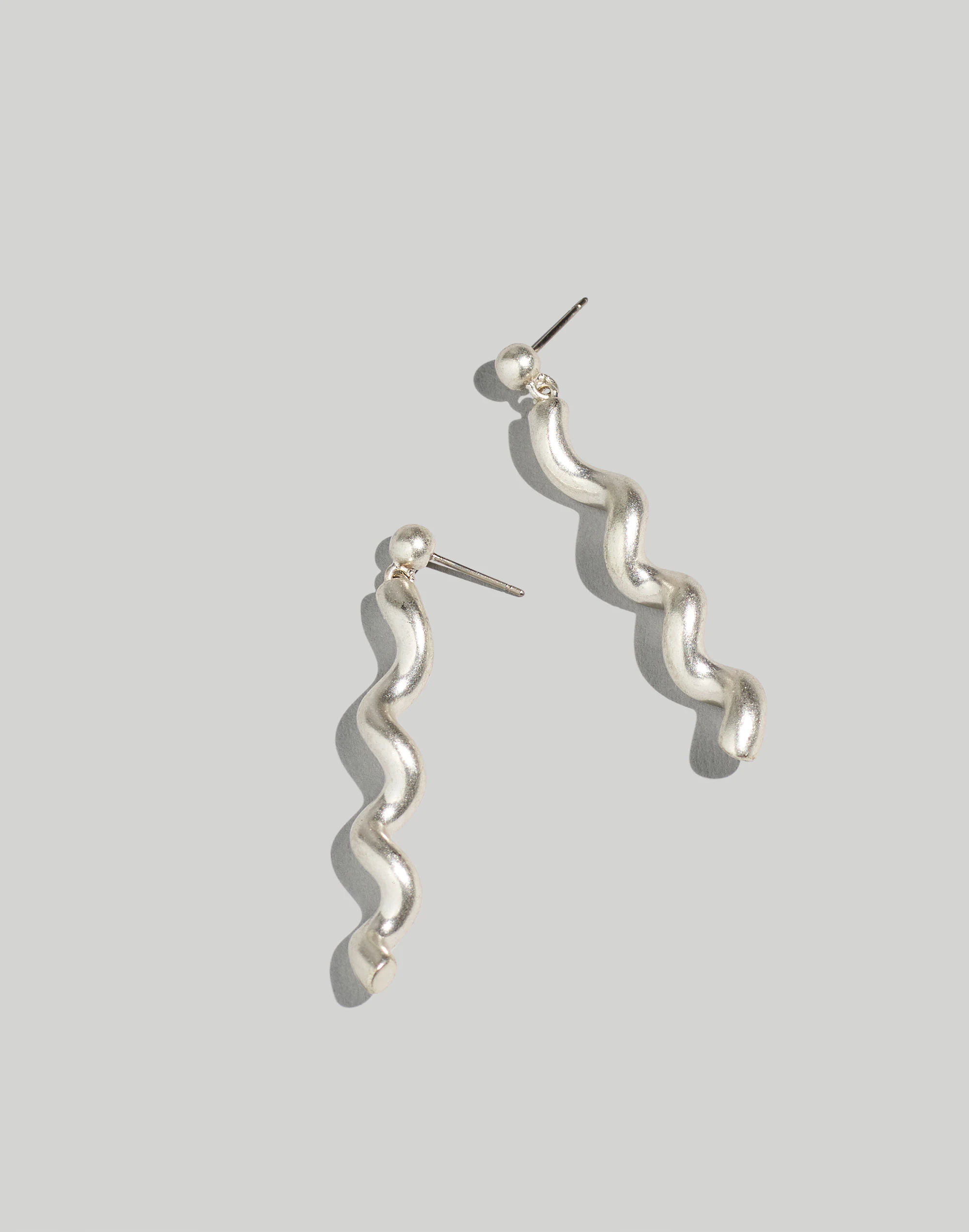Cool dainty spirals hung from tiny rounded studs, these silver-toned statement drop earrings have a fun artisanal vibe.