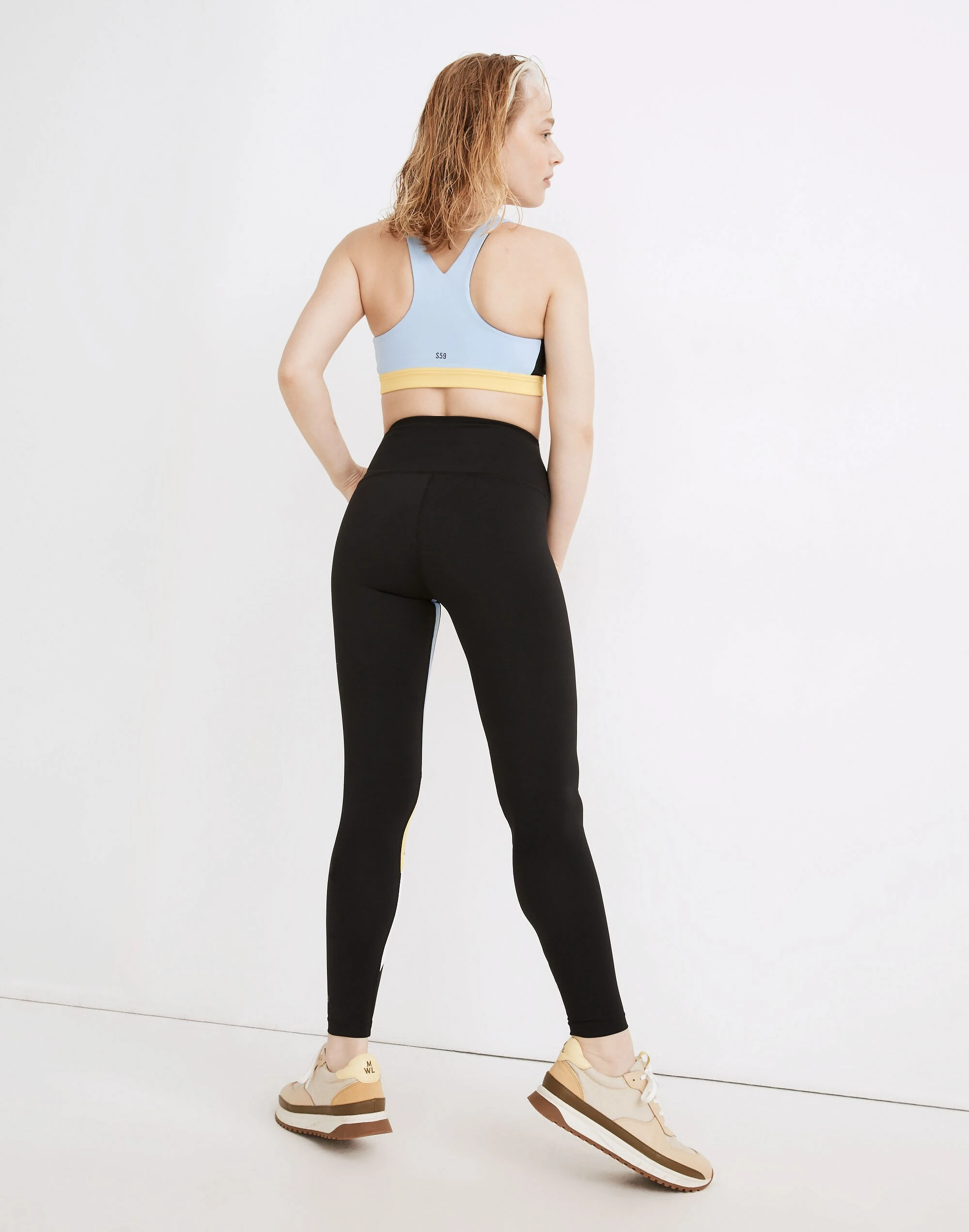 Los Angeles-based Splits59 makes serious activewear that’s seriously workout-selfie-friendly. Crafted from quick-drying, moisture-wicking recycled fabric, these high-waisted leggings have smooth chafe-free seams and touches of colorblocking that coordinate with the matching sports bra.