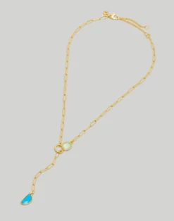 Pretty and powerful, our Stone Collection is made of wearable good vibes. Strung on a paperclip chain, this necklace features drops of semiprecious green apophyllite (which, some say, has a calming and peaceful energy).