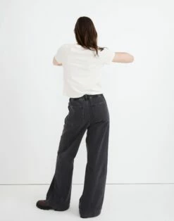 The cut: anchored at the high waist, these pleated pull-ons are the widest wide-leg jeans we’ve ever made (and a fresh take on a ’90s fit). The fabric: Denim that combines the holds-you-in structure of rigid with a touch of stretch for day-one comfort.