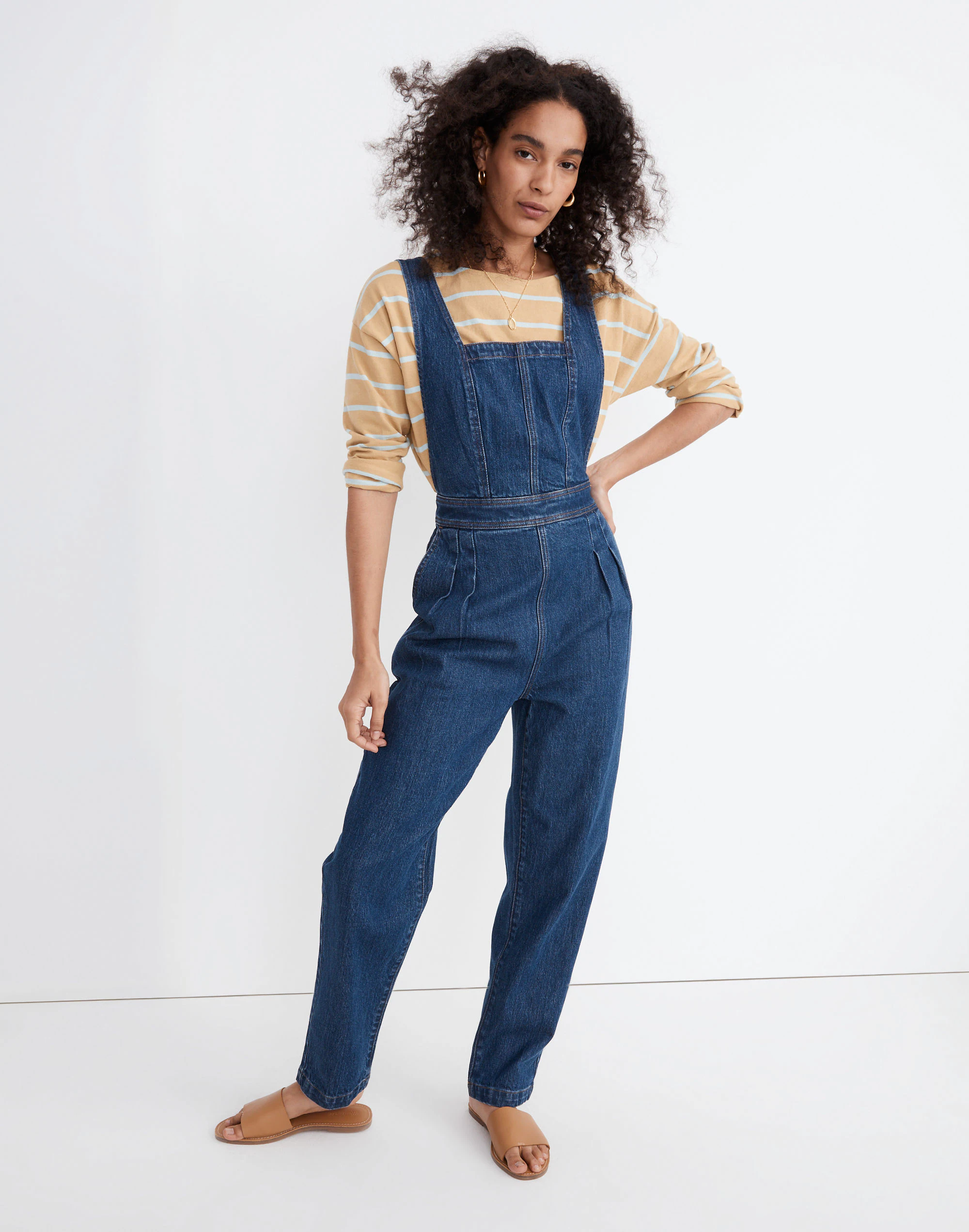 The cut: Perfectly polished (and cool, too), these tapered overalls have pleats at the waist and wide crisscross straps. The fabric: our best-selling Heritage denim has an old-school look and a touch of give for a perfectly broken-in feel.