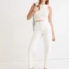 - 11 1/2″ high rise, slim wide leg that tapers to a 15″ opening, 28″ cropped inseam.