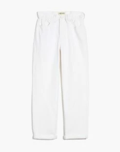 The cut: Slouchy and slightly oversized, these cool convertible boyfriend jeans have an adjustable elasticized waistband that can be worn loose and slouchy or tightened for a paperbag vibe. The fabric: Premium 100 percent cotton white denim with old-school character, no stretch and zero show-through.