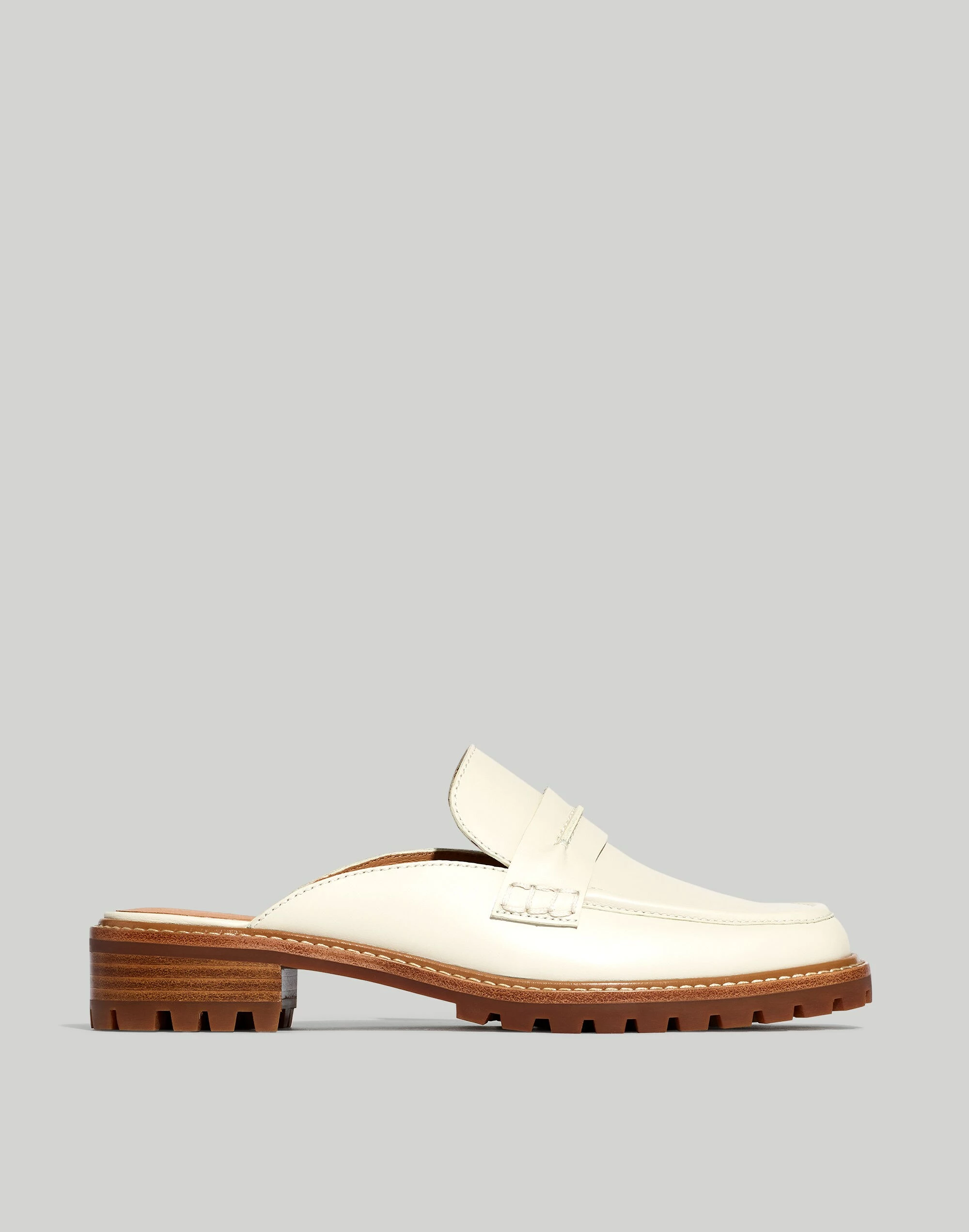Warm-weather friendly, this mule take on a best seller combines classic penny loafers with ’90s-inspired chunky lug soles. Perfect for the office, they go great with midi skirts and wide-leg pants.