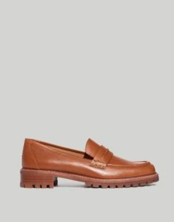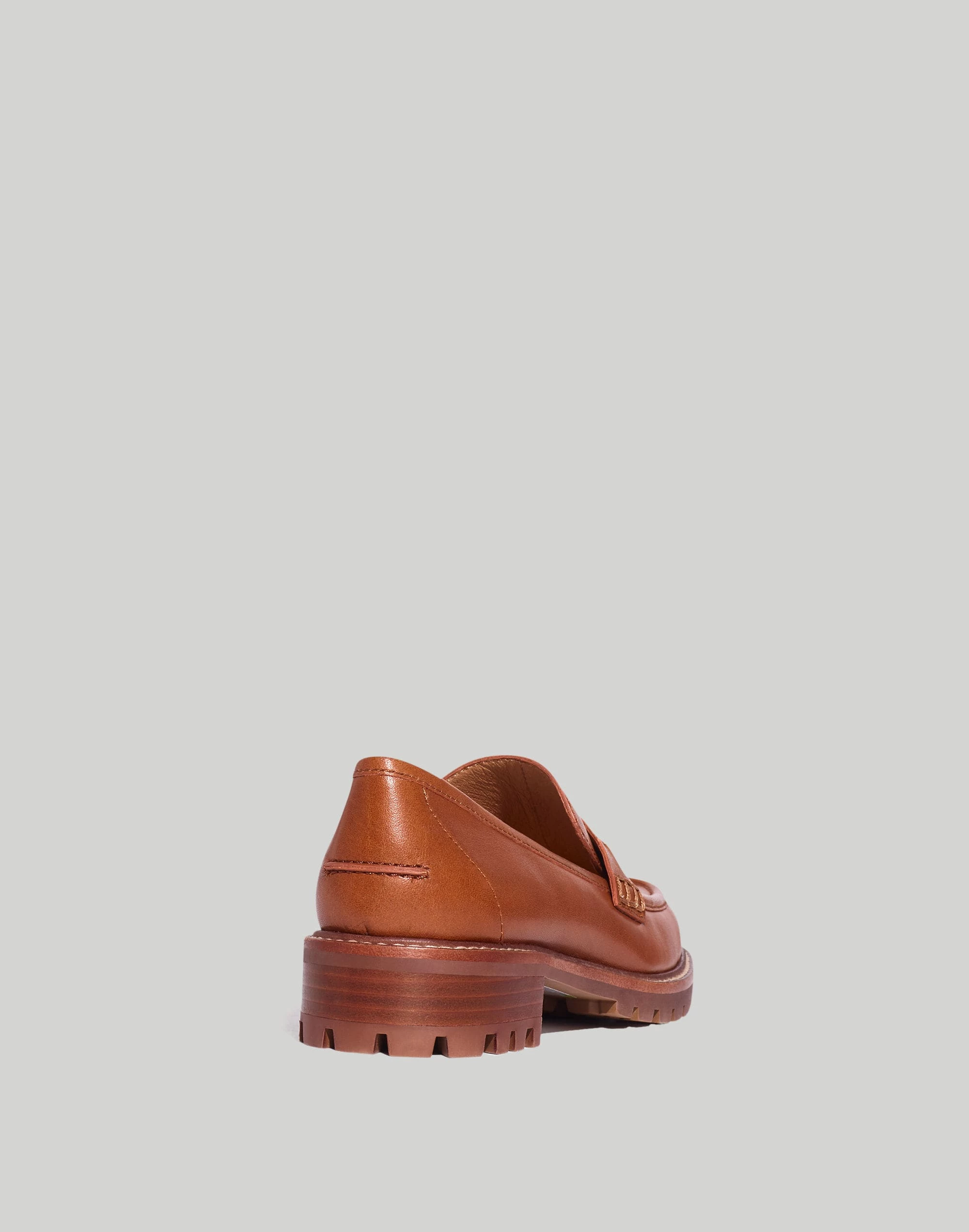 A classic penny loafer with a ’90s-inspired chunky lug sole, this pair is made from ISA™ LITE (Low Impact To the Environment) leather that uses less energy and water than the standard tanning process. An alternative to booties to go with your midi skirts and wide-leg pants.