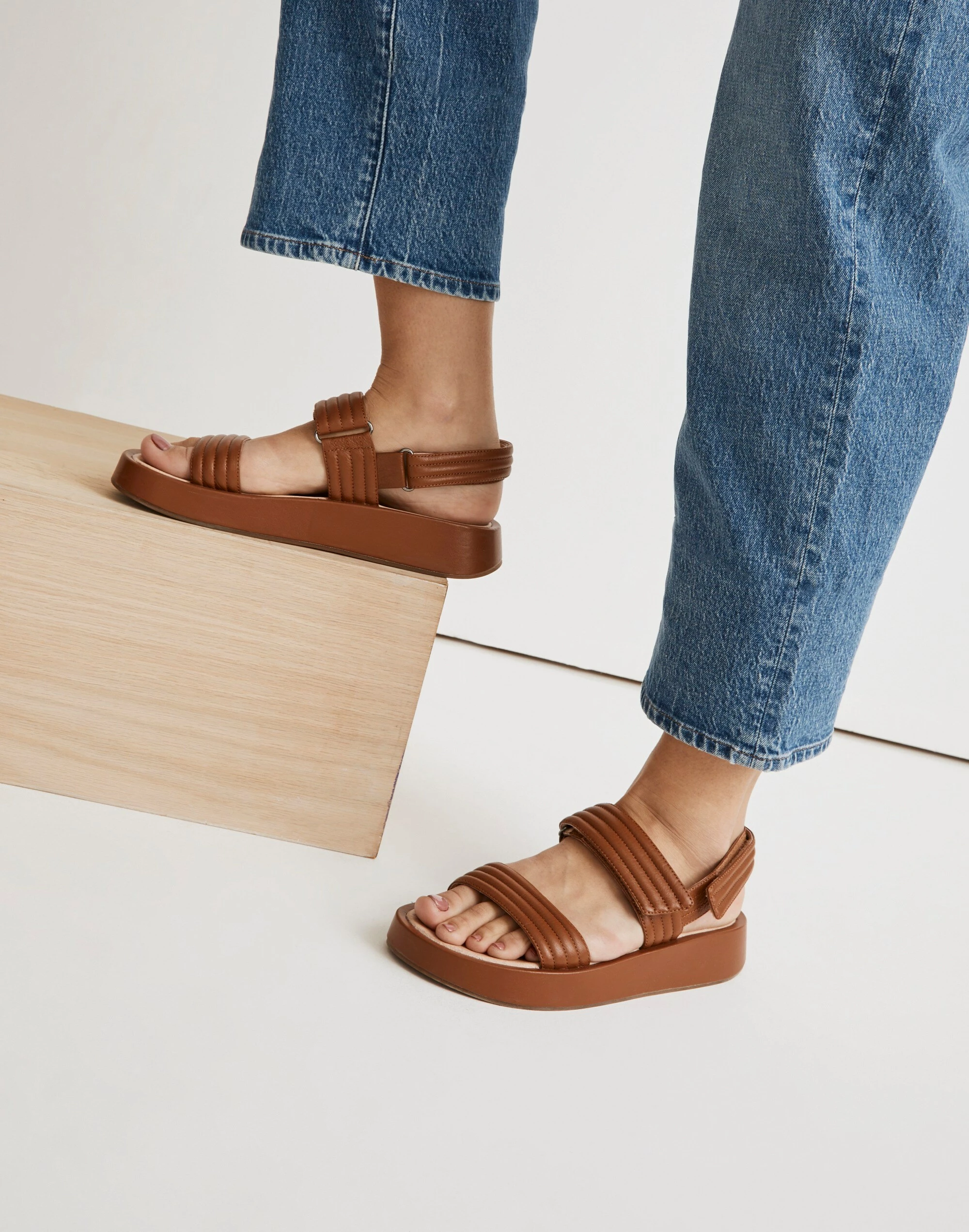 Elevated and chic, these quilted leather sandals have an adjustable slingback strap, a cushy MWL Cloudlift Lite padded footbed and a walkable flatform sole—ready for any adventure.