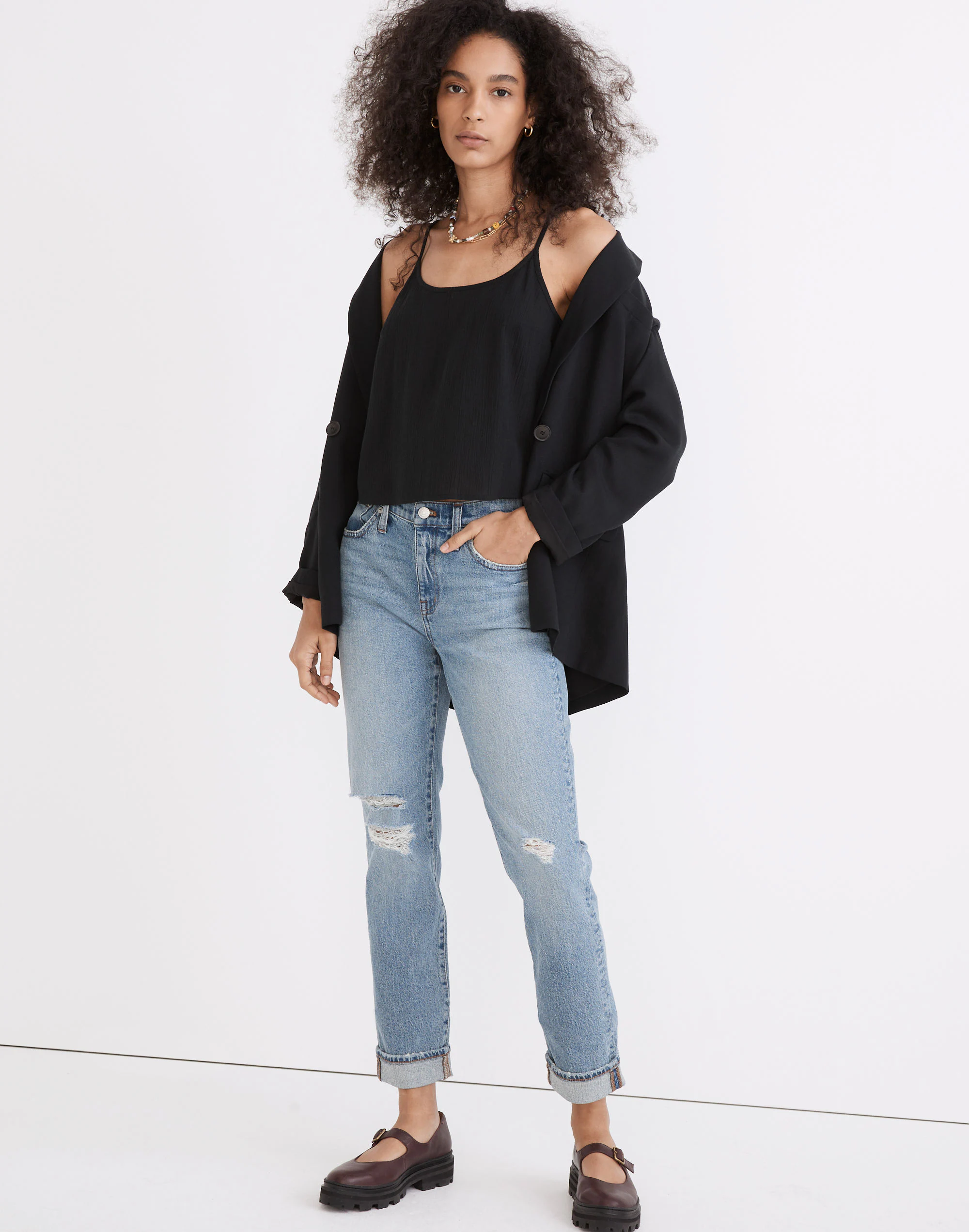 The cut: Easy in the (high) waist, our signature boyfriend fit has a slim-but-still-relaxed leg (think a vintage men’s jean cut for you). The fabric: Premium Orta stretch denim woven with TENCEL™ lyocell so it’s both soft to the touch and perfectly structured.