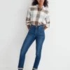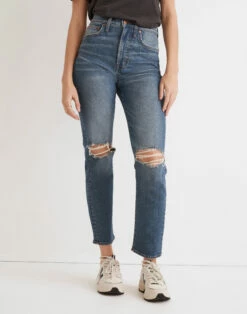 The cut: With their waist-accentuating high rise and tapered crop legs, these are “mom jeans”…if your mom was a ’90s supermodel (they even have perfectly ripped knees). The fabric: premium denim that combines the holds-you-in structure of rigid with a touch of stretch for day-one comfort.