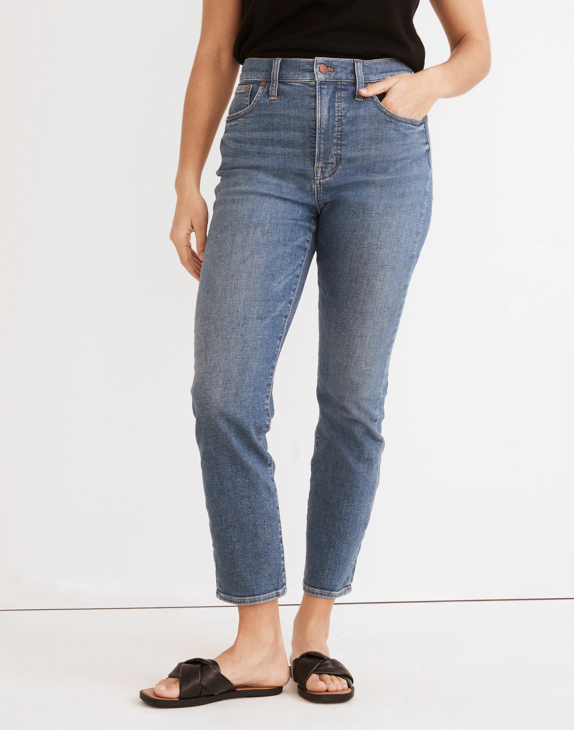 The cut: With their waist-accentuating high rise and tapered legs, these are “mom jeans”…if your mom was a ’90s supermodel. The fabric: Premium vintage-y stretch denim that hugs the body and bounces back like a pro (aka no 3pm bagginess).