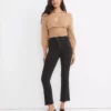 - 11 1/4″ high rise, fitted through the hip and thigh, 12 3/4″ tapered leg opening, 28″ inseam.