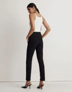 - 11 1/4″ high rise, fitted through hip and thigh, 12 3/4″ tapered leg opening, 28″ ankle-length inseam.