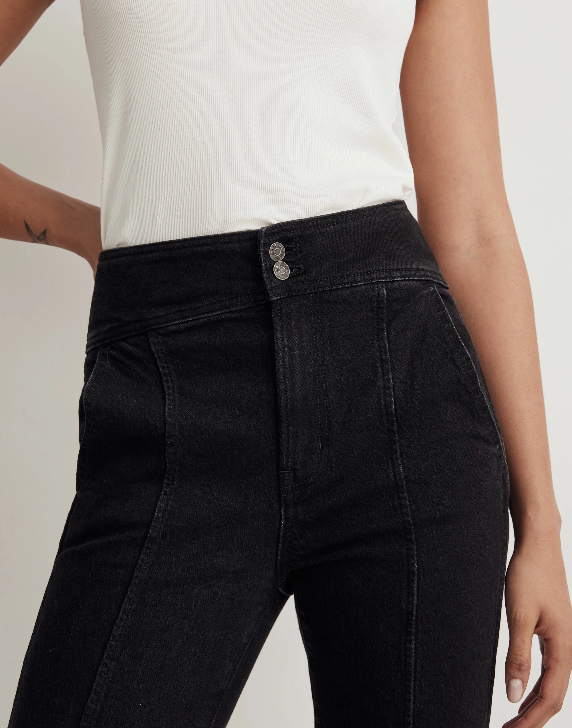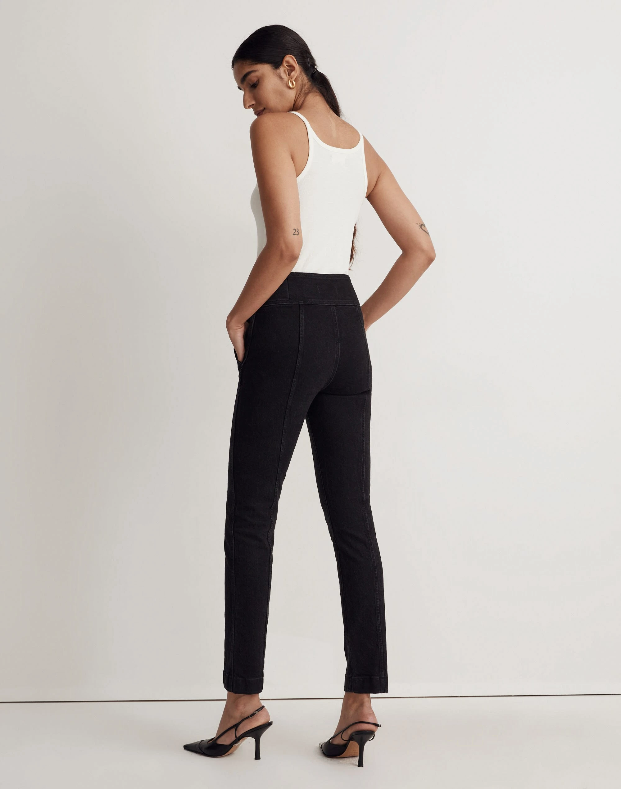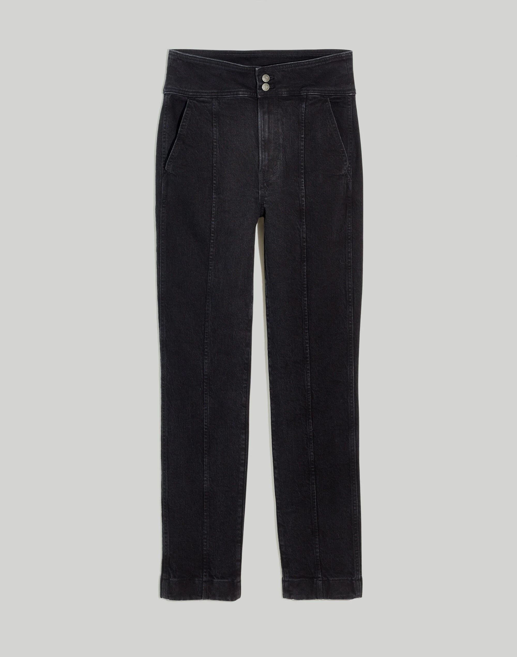 The cut: with their shaped waist-accentuating high rise, angled menswear-inspired pockets and seamed tapered legs, these are “mom jeans”…if your mom was a ’90s supermodel. The fabric: vintage-y structured denim with a touch of stretch for a broken-in feel.