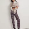 - Shaped waistband, seamed legs, angled trouser pockets.