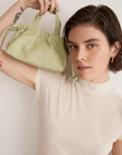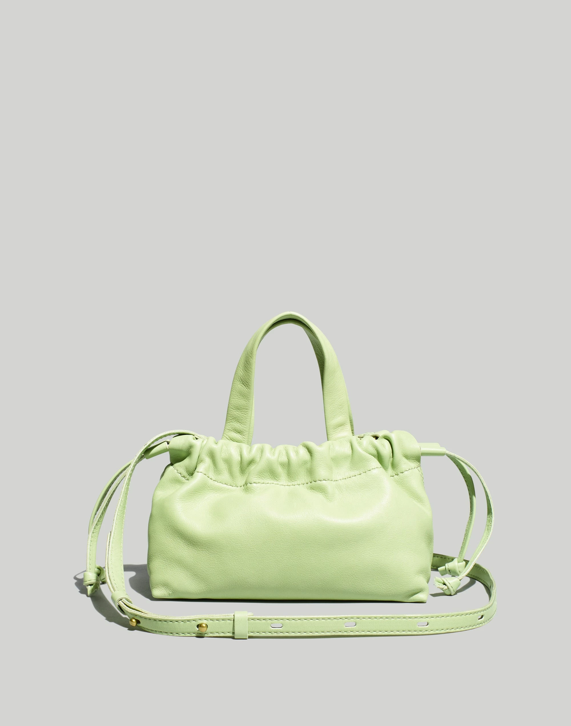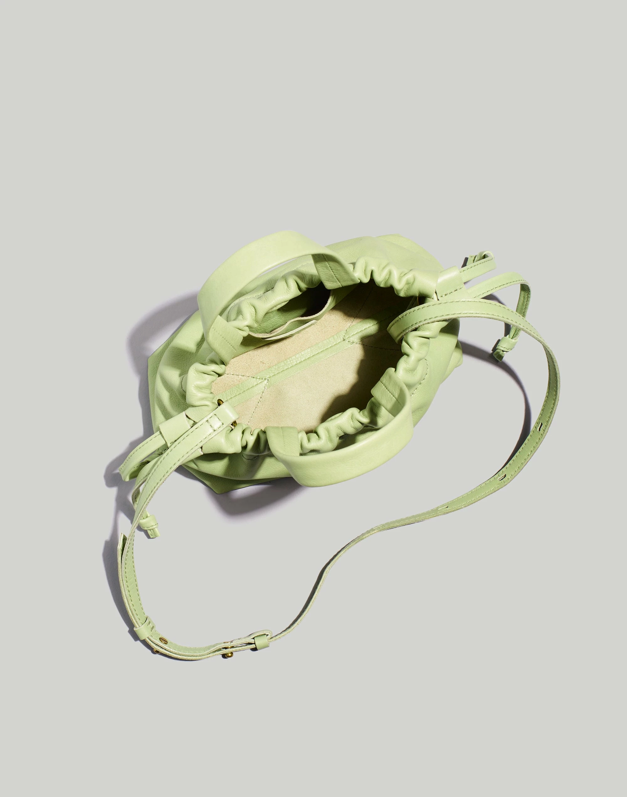 Welcome to the Piazza. Our luxurious new bag family features unstructured shapes, bold colors and supersoft, sustainable leather. With a cinchable drawstring, magnetic closure and an adjustable (and removable) shoulder strap, this mini crossbody can hold a phone, keys, lippie, hand sanitizer, face mask and sunglasses.