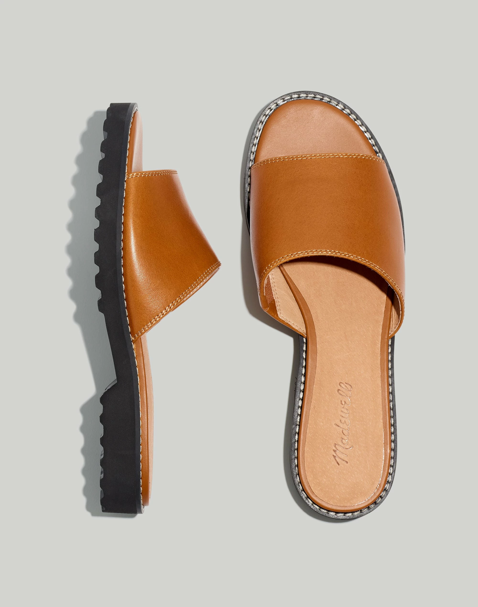 Made of smooth leather, these low-heeled slide sandals have bold details like contrast welt stitching and a lugsole. And, cushiness alert: our MWL Cloudlift Lite padding feels like walking on a… well, you know.