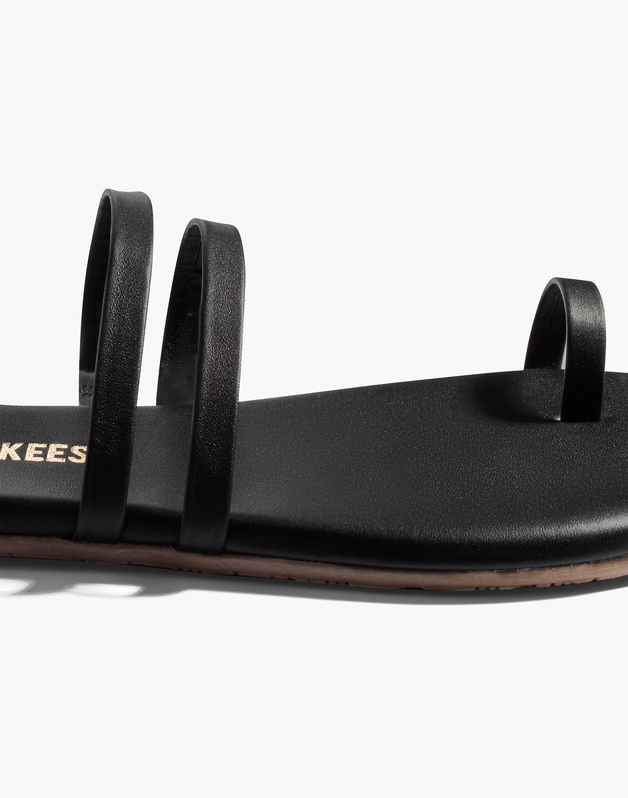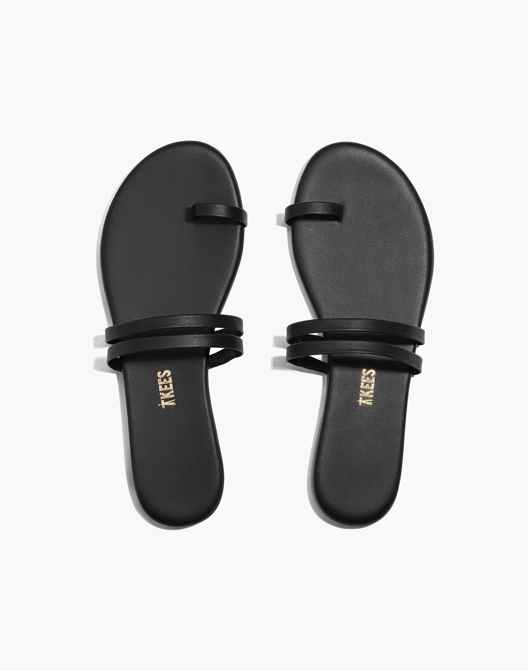 Carly and Jesse Burnett dreamed up their superminimal footwear line while on a beach vacation (pronounced “tee-keys,” it’s named after the tiki hut where they came up with the idea). Made in Brazil of top-quality leather, these delicate sandals go seamlessly from day to night.